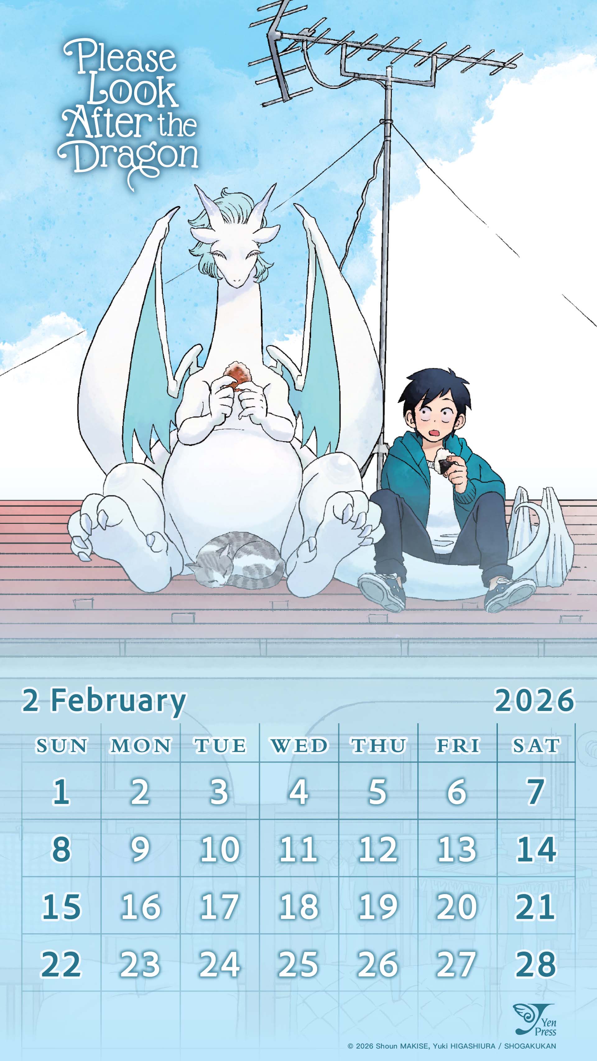 This February, decorate your devices with with the comfy supernatural slice-of-life manga, Please Look After the Dragon, or the tragic romantasy manhwa, The Merman Trapped in My Lake!