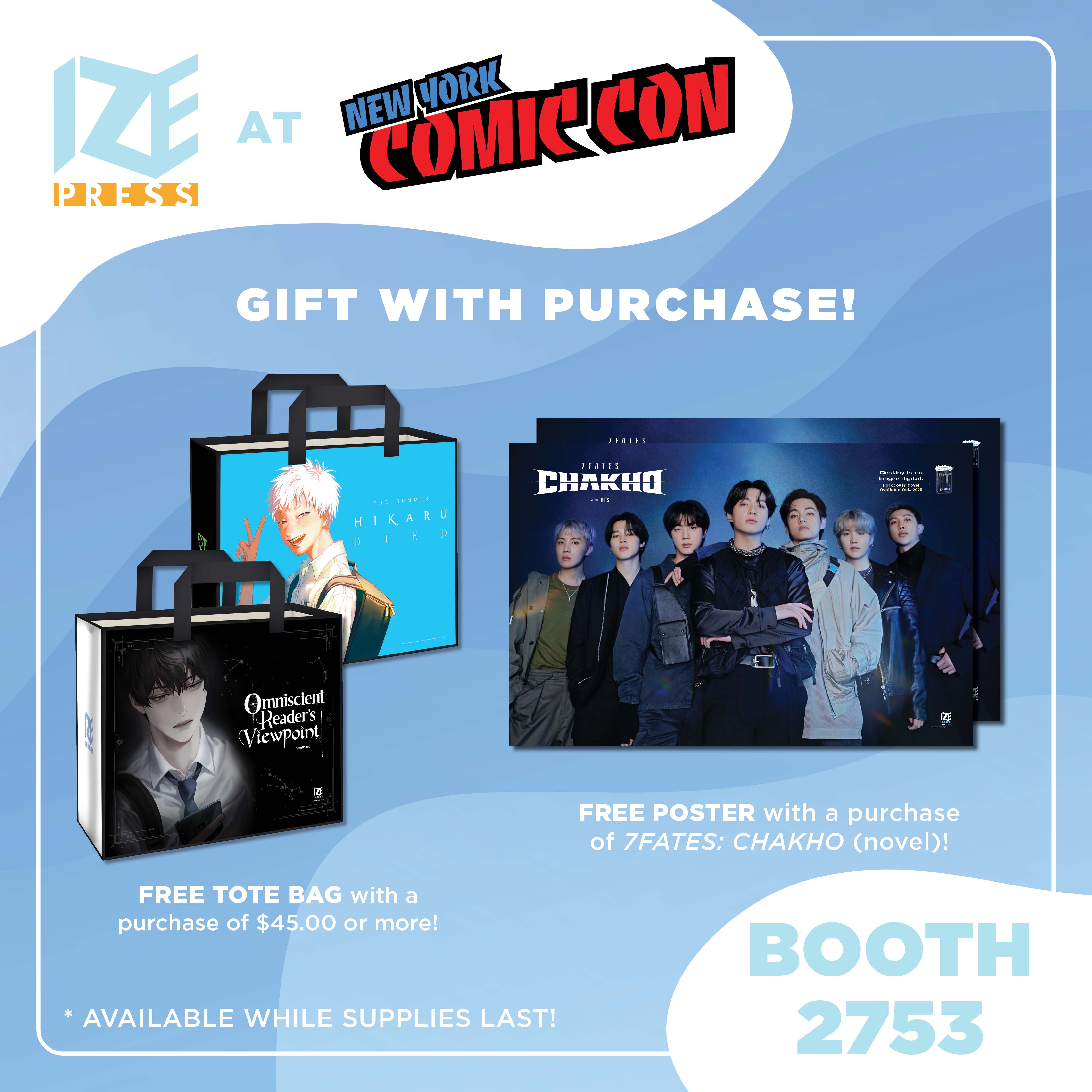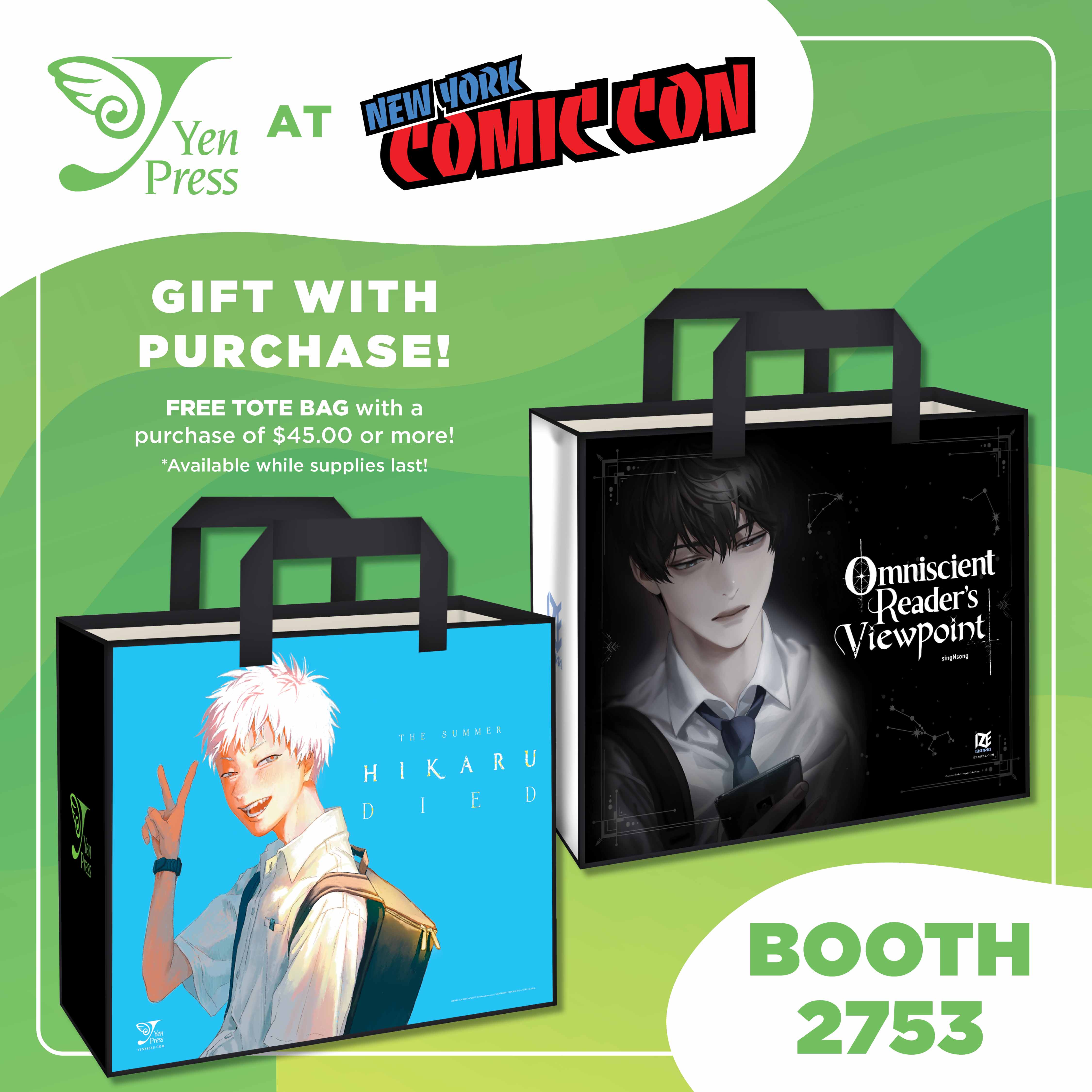 For those who purchase $45+ of books at our booth, you can get cool tote bags featuring The Summer Hikaru Died and Omniscient Reader's Viewpoint (novel)!