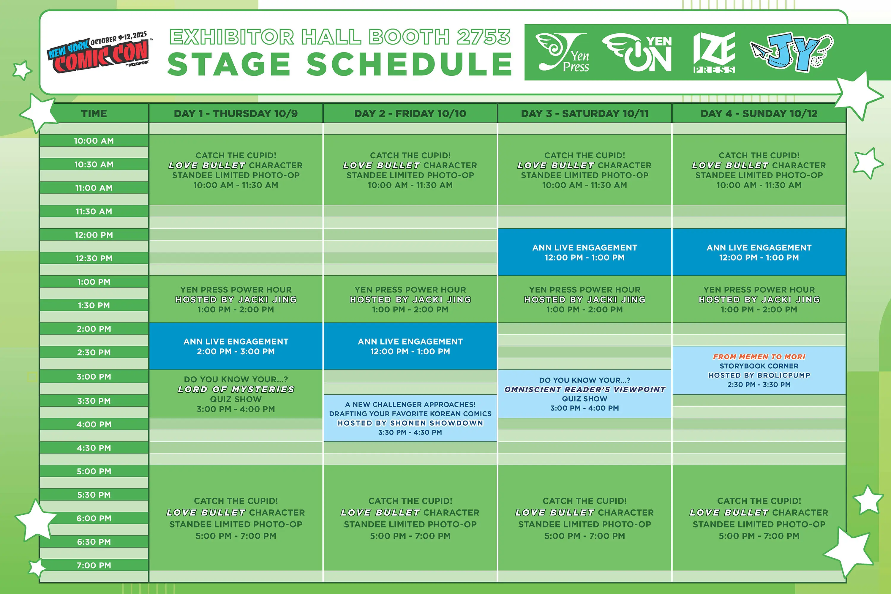 Stop by the Yen Press Booth for a chance to grab exclusive Love Bullet photocards, only available at New York Comic-Con 2025!