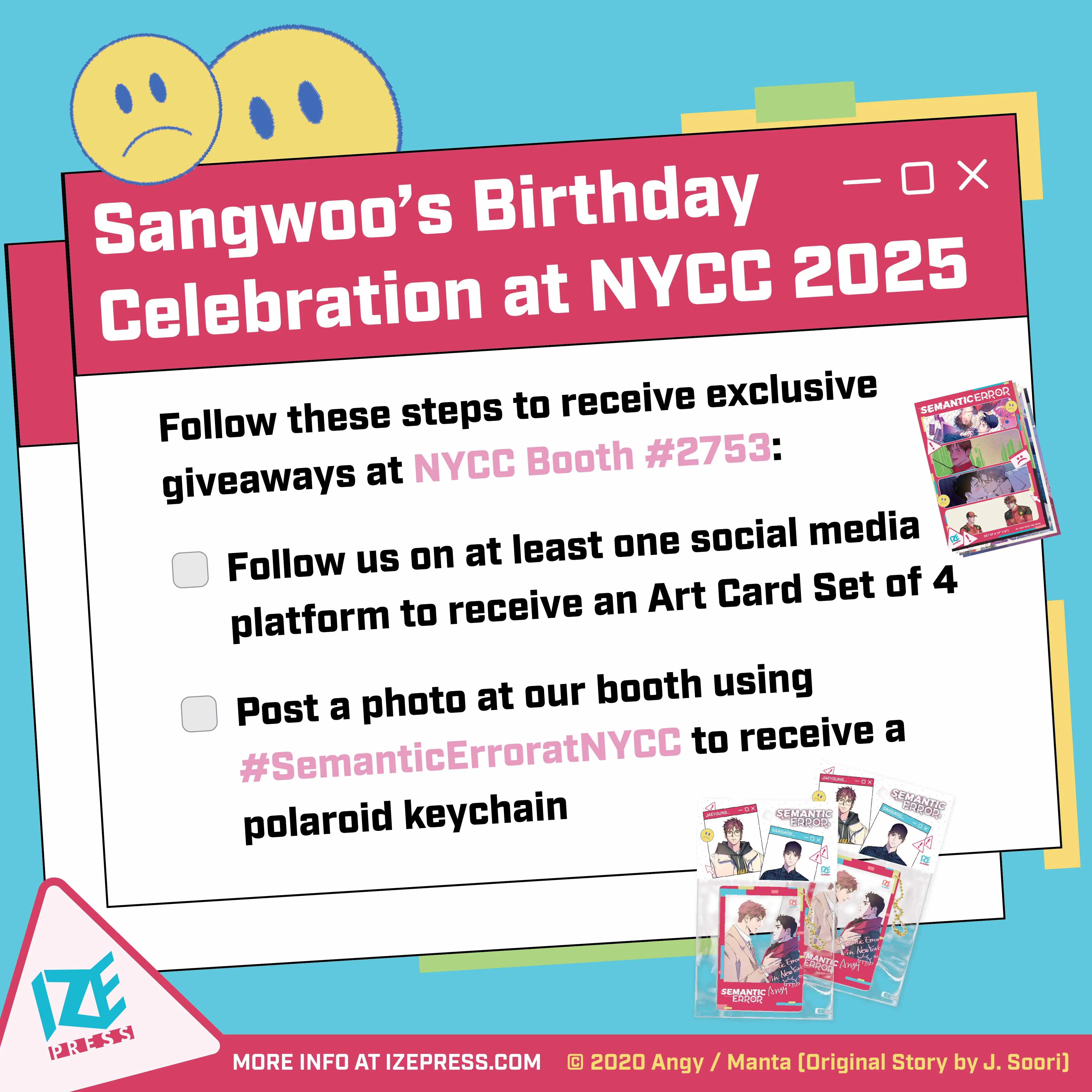 Semantic Error fans! To celebrate Sangwoo Choo's birthday (10/01), we're offering some freebies at the Ize Press kiosk.