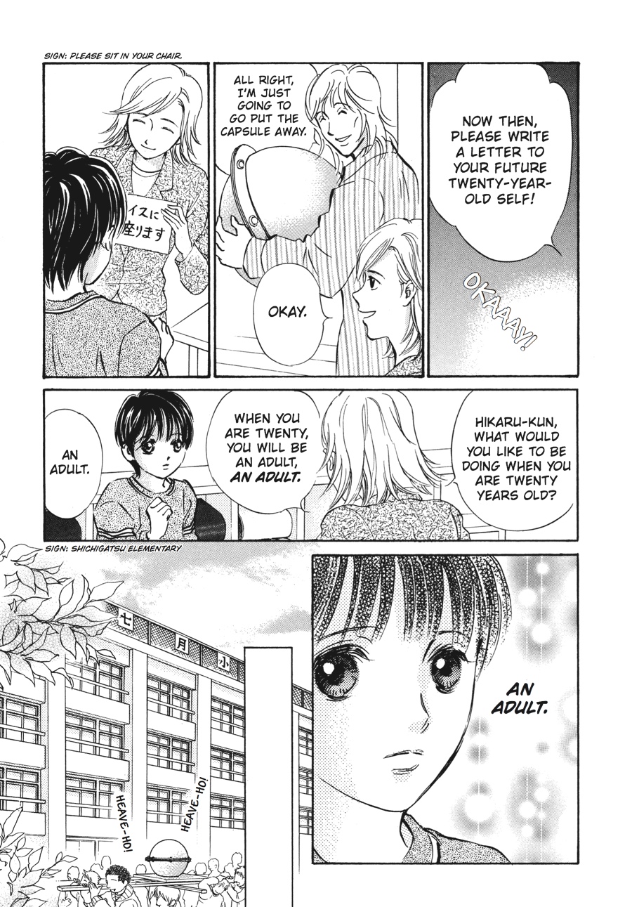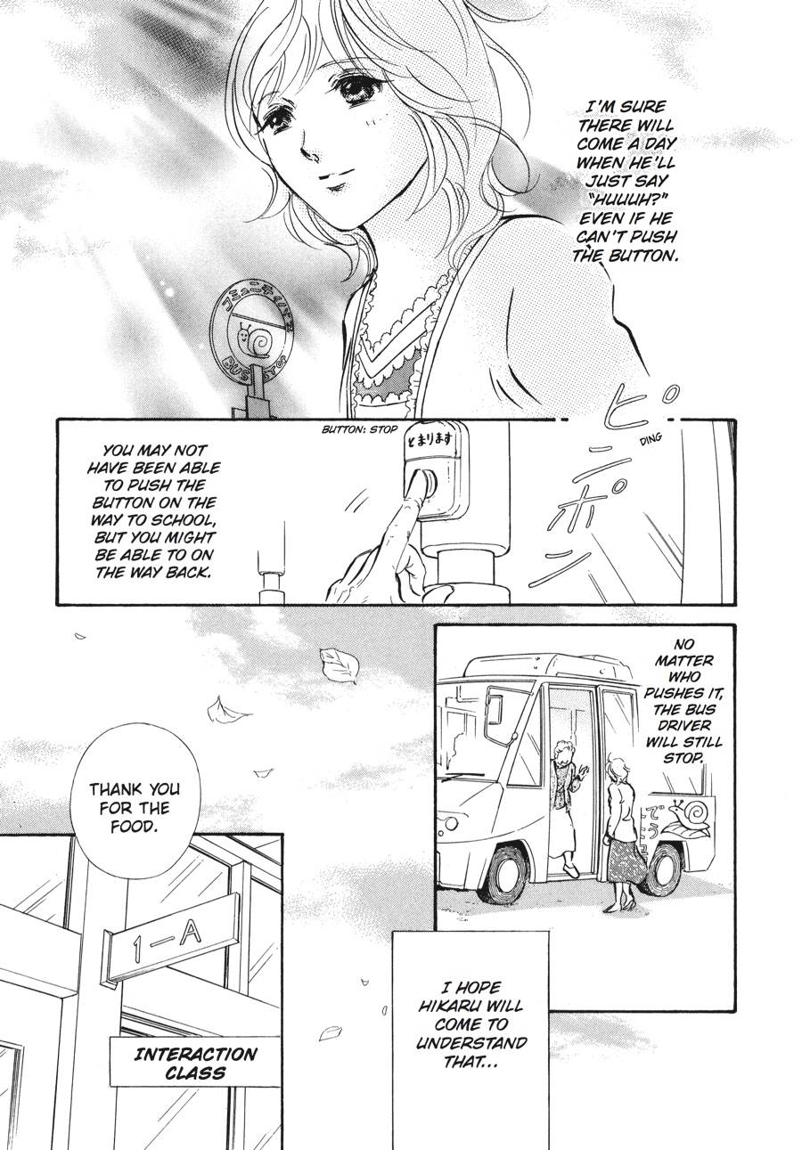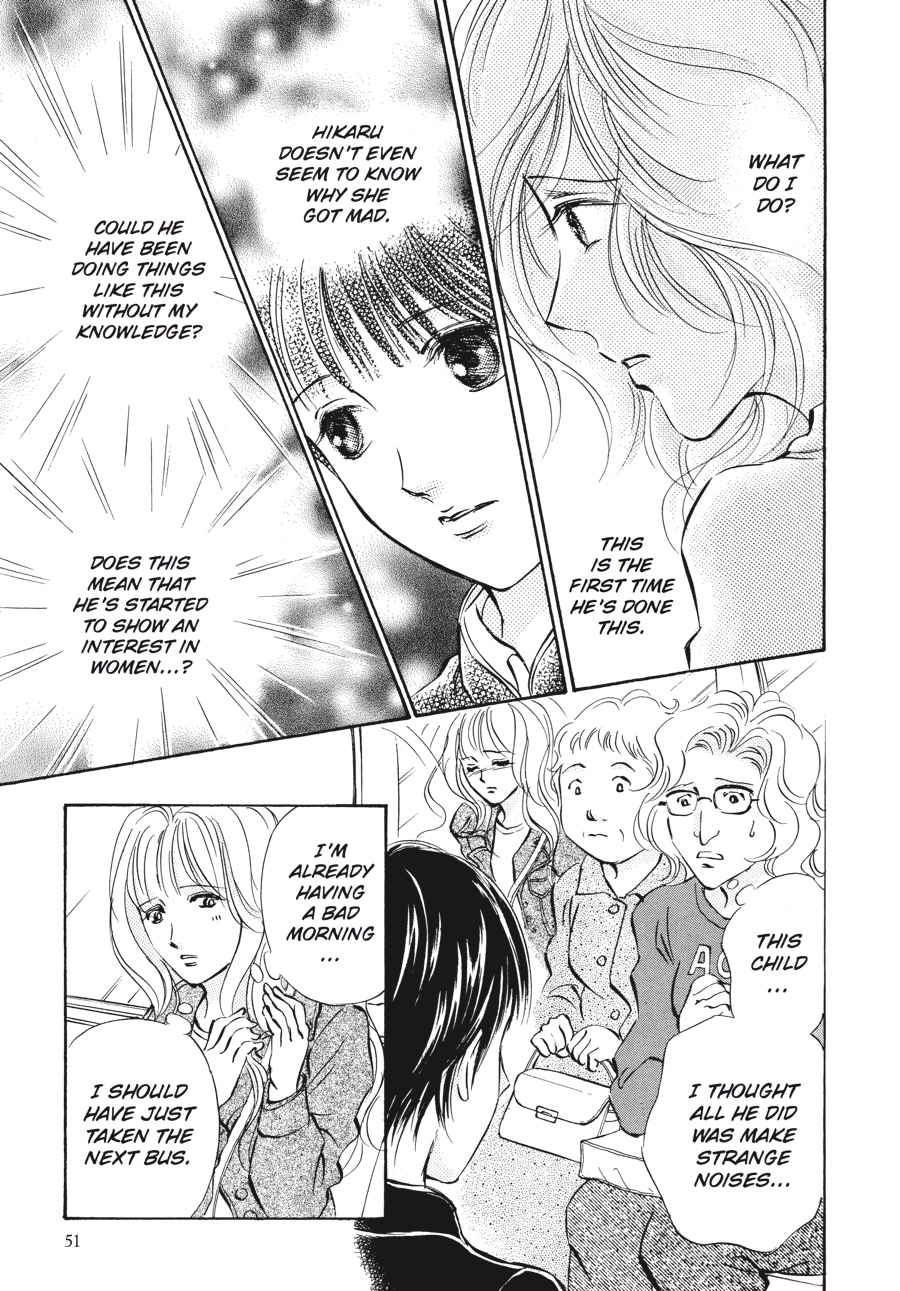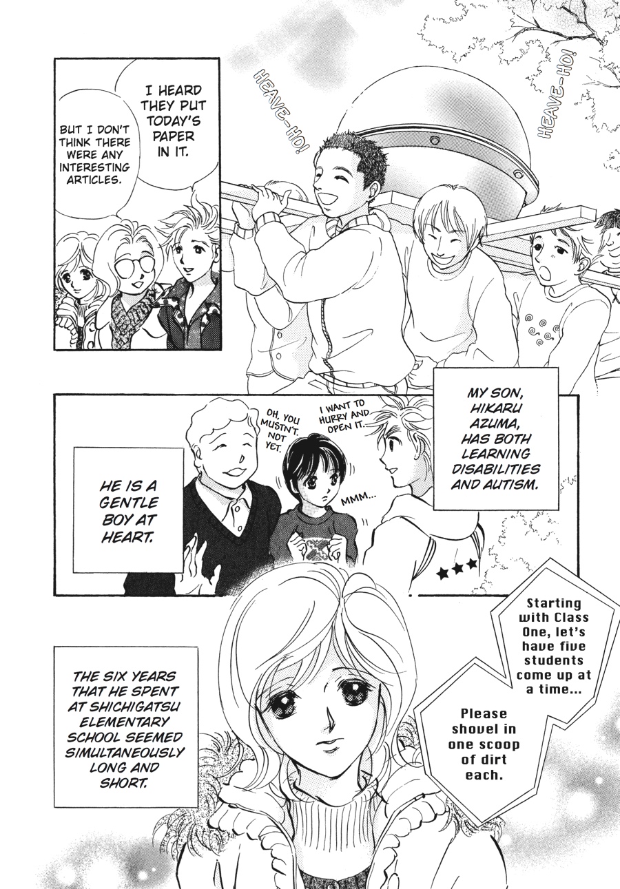 Hikaru is in Junior High School now, and he takes the community bus to get to school. For now, Sachiko needs to go with him everyday... Even though Hikaru is pretty much capable to ride the bus, there are still problems to deal with. Sometimes Hikaru gets upset because someone pushed the buzzer to stop first. Or there are days when he finds out that he can't sit down. But these problems are nothing compared to what he did to a lady sitting next to him...he sniffed her hair and touched it, causing her to freak out and treat Hikaru like a pervert!Something that wasn't a problem when Hikaru was younger becomes a major problem as he grows taller than Sachiko. How will Sachiko deal with this problem? A little hint from the Sunshine House gives her a creative idea to resolve it.