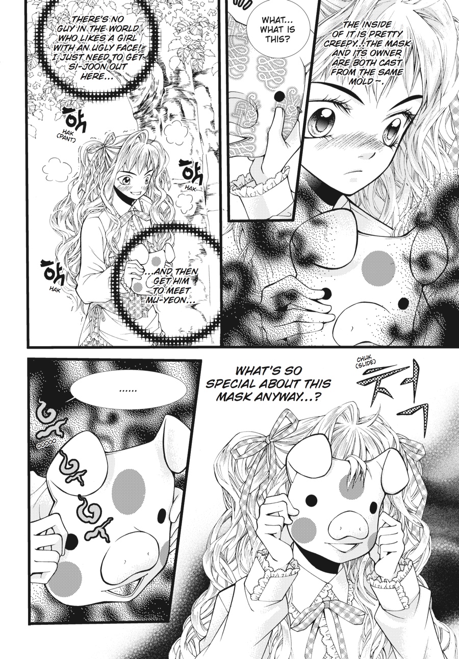 Now that she has discovered Si-Joon's secret fiancée, Doe-Doe will stop at nothing to rip the masked girl away from Si-Joon, whom she has already claimed as her own. But Mu-Yeon's affection for Si-Joon is not something to be trifled with, especially when dark spiritual forces are involved...As memories of his past life with Mu-Yeon resurface, the time when Si-Joon will have to face the mystery of the pig bride head-on is drawing near. But will he be prepared when the critical moment comes?
