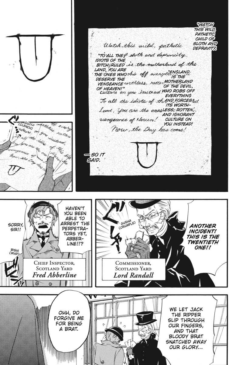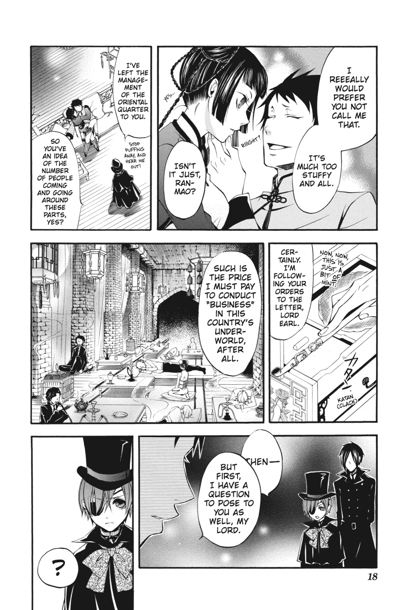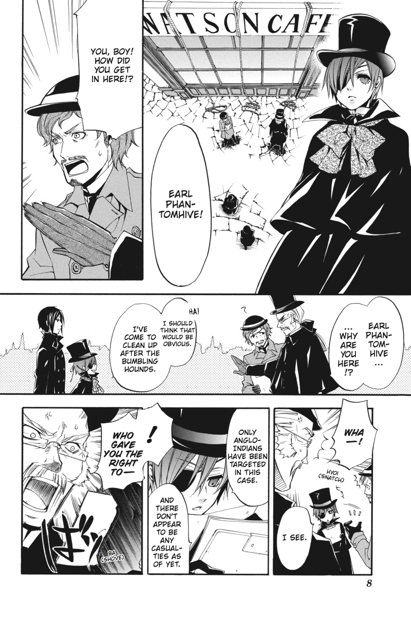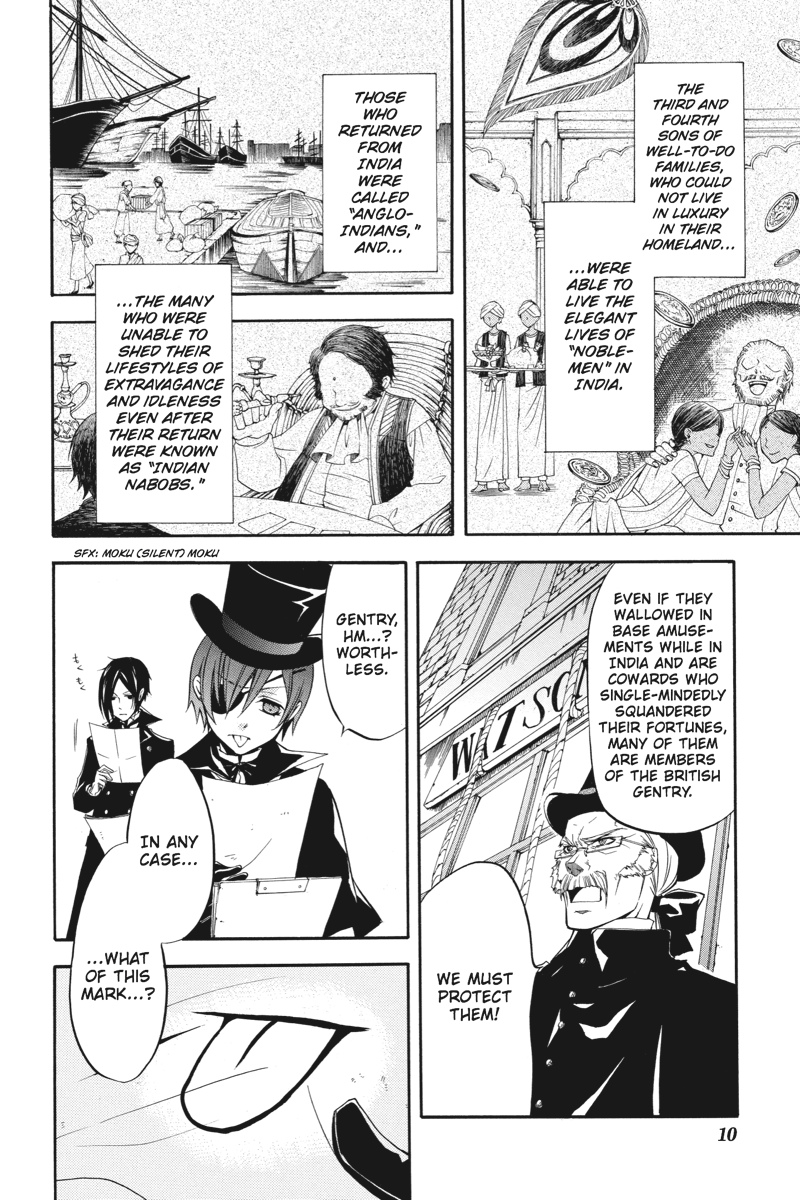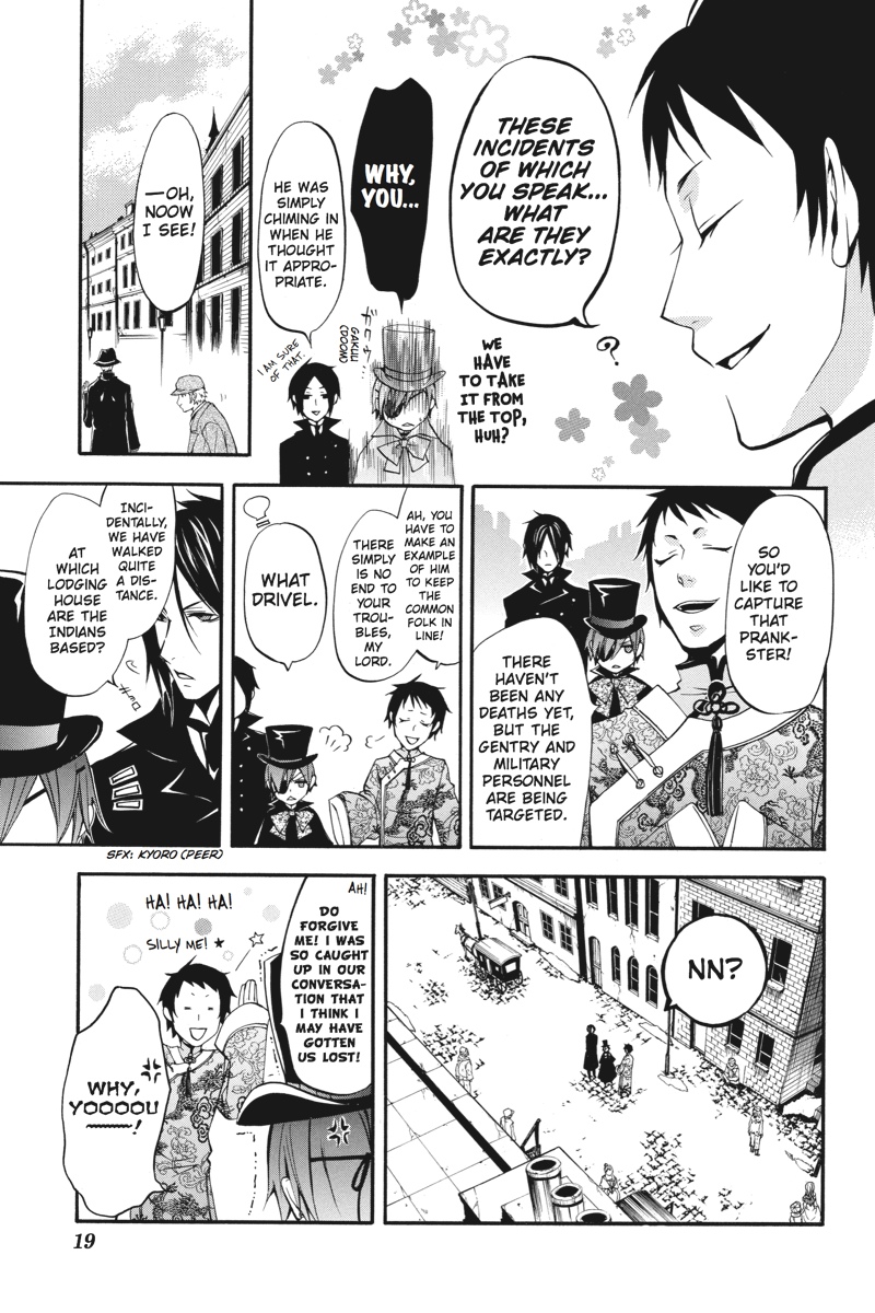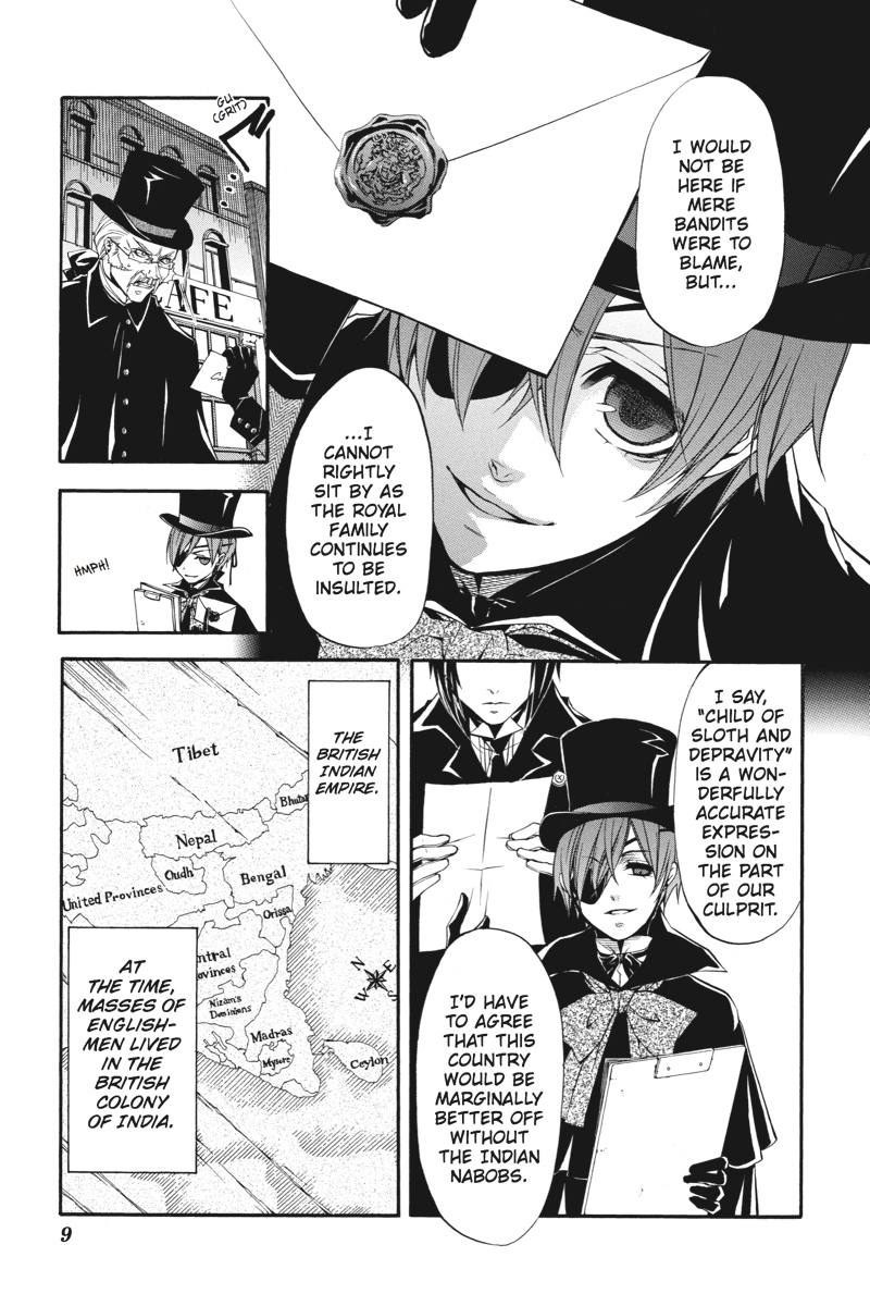 London - the capital of the Great Empire - is once again under siege, as a string of bizarre attacks on British citizens returned from India sends rumours flying and casts a pall upon Queen Victoria's rule. Sent in by Her Majesty, young Earl Phantomhive and his most capable butler, Sebastian, follow a trail that collides head-on with an Indian youth who claims to be a prince. And this prince possesses an extraordinary butler of his own! As an intense rivalry between the two butlers begins to form, will the kitchen be the dueling duo's final battleground?!