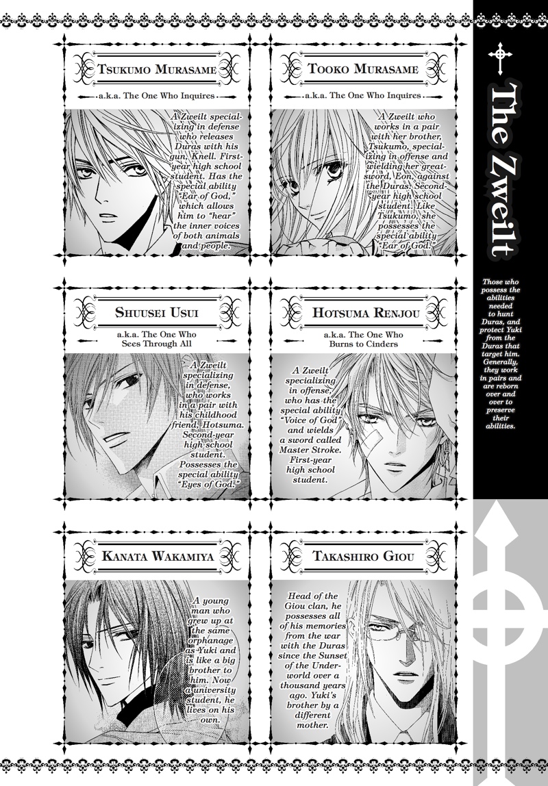 Welcomed into the arms of the Giou clan and the Zweilt, Yuki reaches out to his comrades even as he is drawn into their war with the darkness. But the demonic Duras continue to spread their malevolence around Yuki, and the members of his new family are not impervious either, as one of their own vanishes without a trace and yet another is cornered by a sudden ambush. In the Zweilt, Yuki may well have found the long-sought-after place he belongs, but the enemy seems intent on stealing it out of his grasp forever. And when the shadowy figure of "Reiga," the nemesis of the Giou, finally steps into the light, will Yuki find himself utterly alone, crushed by the weight of the truth?