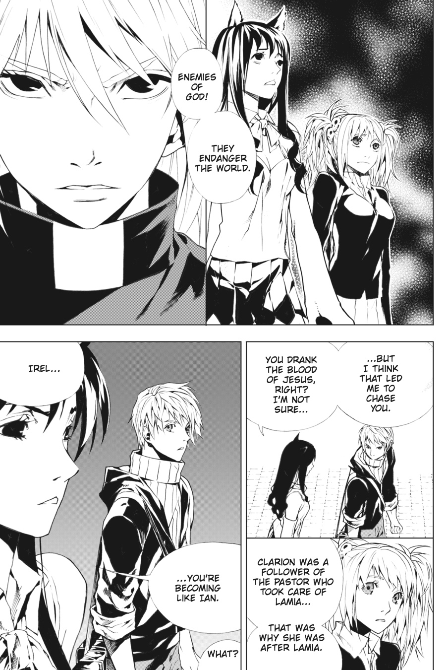 Crossline's secrets are gradually exposed as Detective Chrismakes his escape from its headquarters on one front and Irel confronts itsagents on another. Meanwhile, Lamia uncovers startling truths about her ownorigins. Is Crossline's influence too complete to escape, or are Irel's ownabilities enough to undermine Crossline's "messiah"?