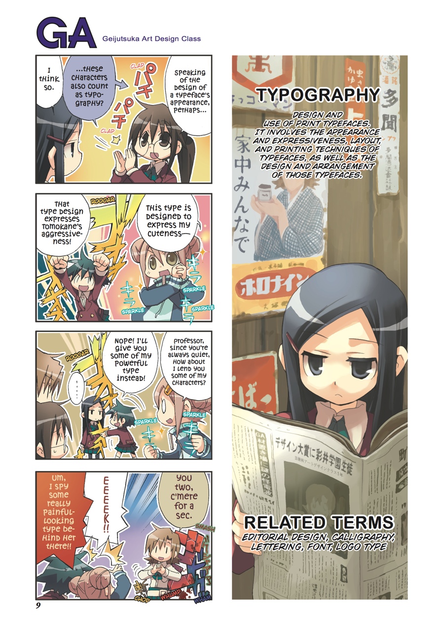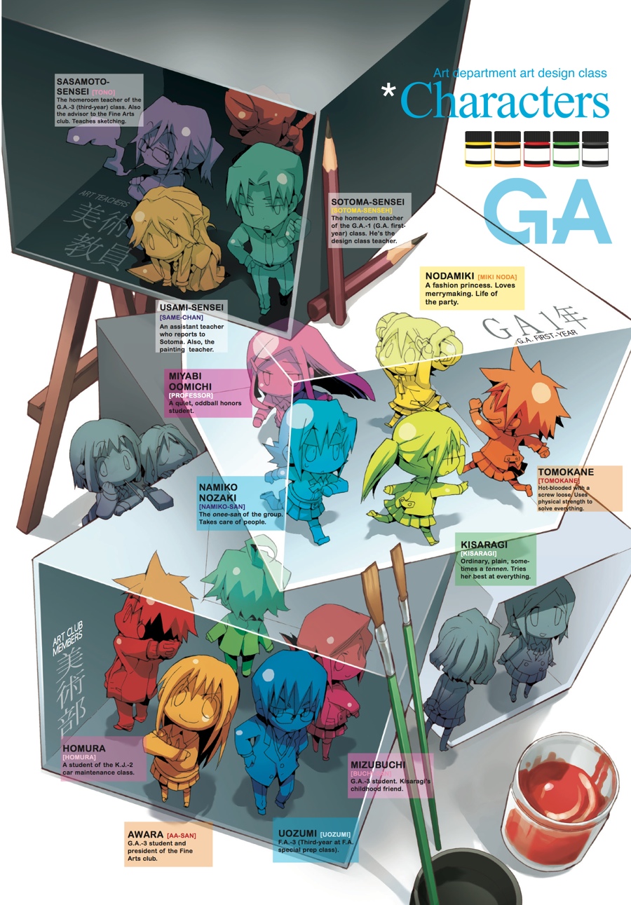 It's time for fun and fonts with Kisaragi and the rest of the memorable GA cast as they dive into the world of commercial design! But in a whirlwind of typography, photography, pictograms, and illustration (among other things), will the girls ever get any of their work done?! And with the Art Club and their...erm, unique projects running wild, leaving hijinks in their wake and distracting the GA girls, will a secret revelation about Tomokane completely blindside the group?!