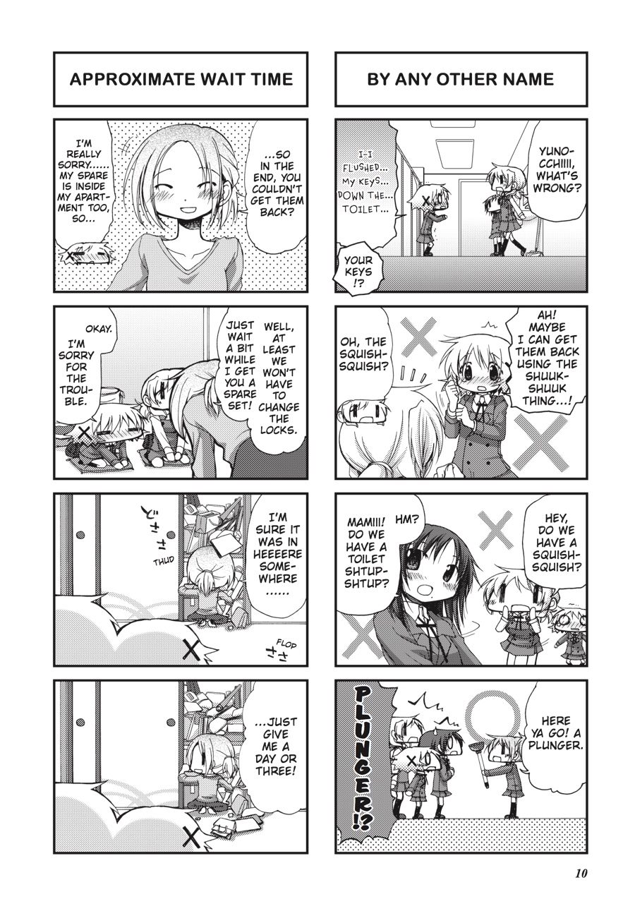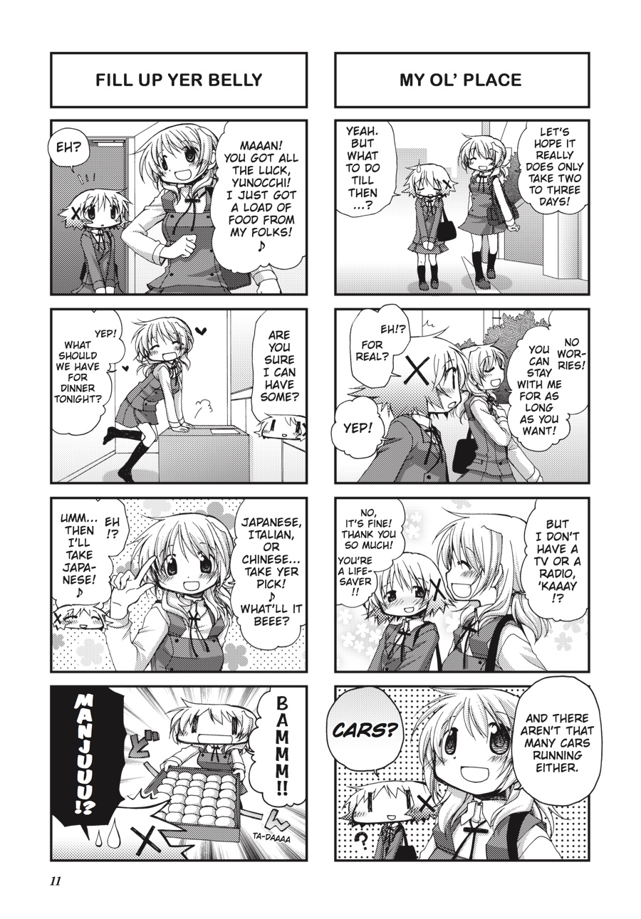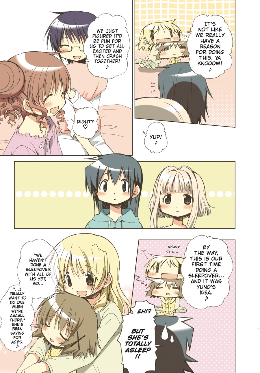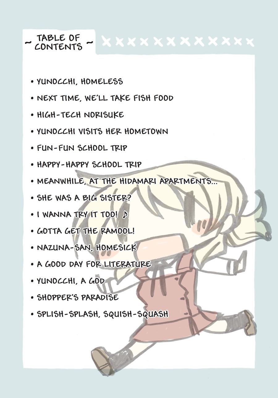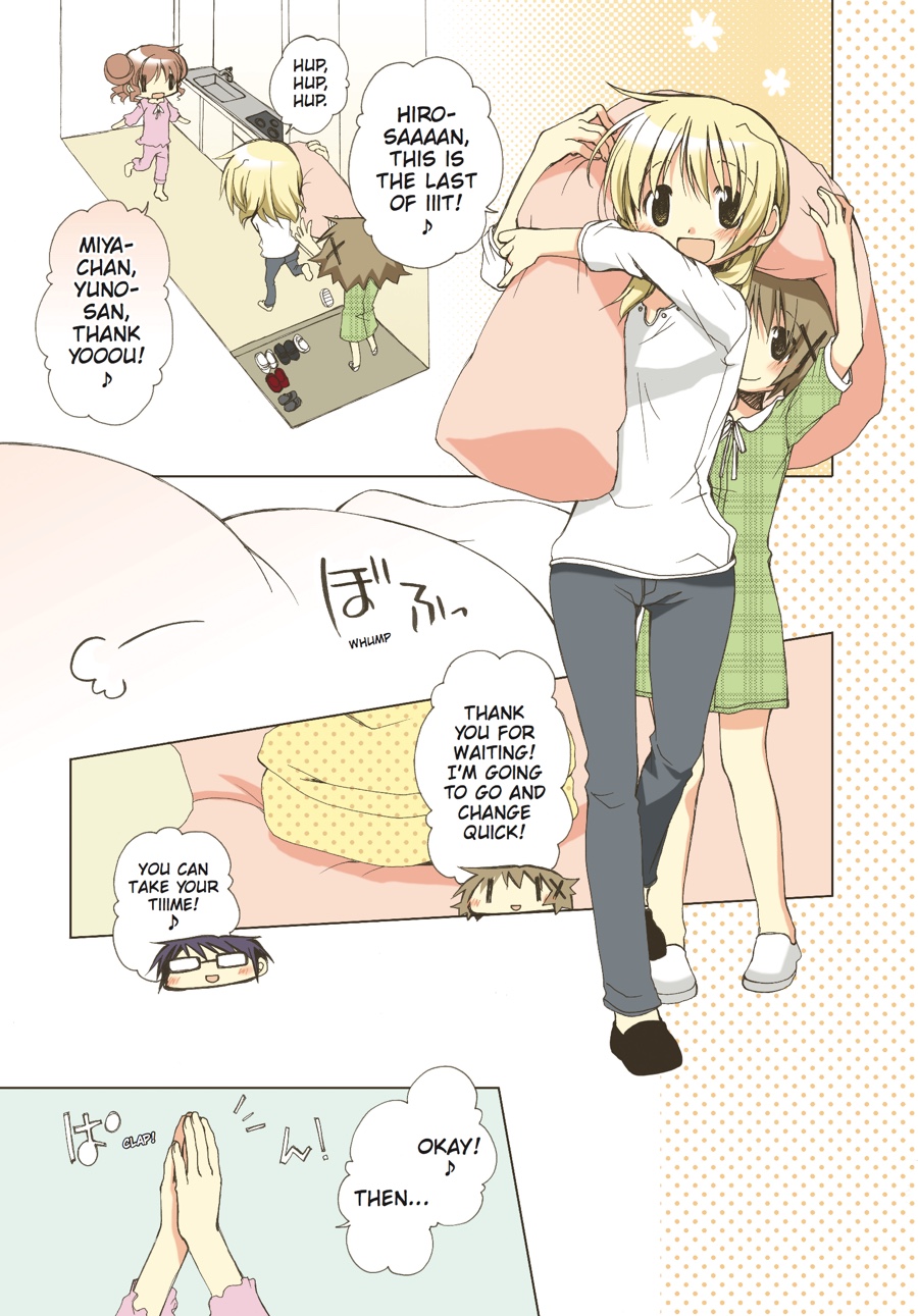 With the innocent first-years Nazuna-chan and Nori-chan rounding out the quirky cast of residents at the Hidamari Apartments, every day is shaping up to be quite...erm, interesting! When Yuno manages to lose a battle with a toilet for her house key, her clumsiness leads to, among other things, a sleepover, which in turn becomes something of a habit. But with homesickness making the rounds through Hidamari, school trips for some residents resulting in others being left to their own wacky devices, and the pressures of college entrance exams looming, a girl like Yuno can use all the dedicated friends and fun sleepovers she can get! Grab a pillow and settle in for another sunny, heartwarming romp through Hidamari!