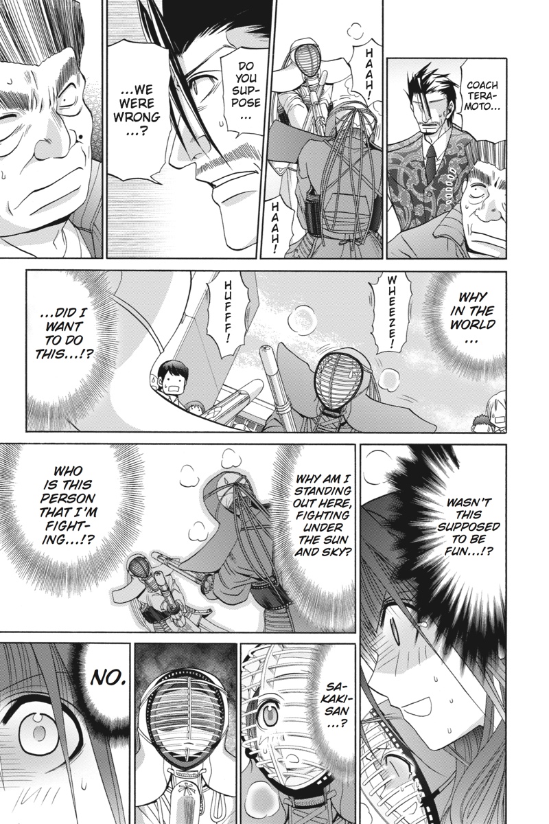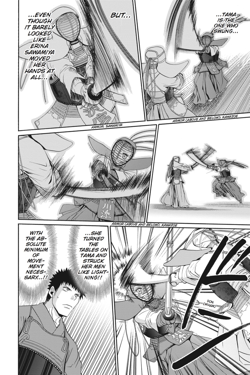 (Volume 9) After their disciplined training, the Muroe High kendo team is ready for action on the day of the practice meet. Their opponents from Kamasaki High, however, hardly seem pumped for competition. As the scores are tallied, will even Ishibaki's pupils find the passion for victory burning within their neglected armor?
