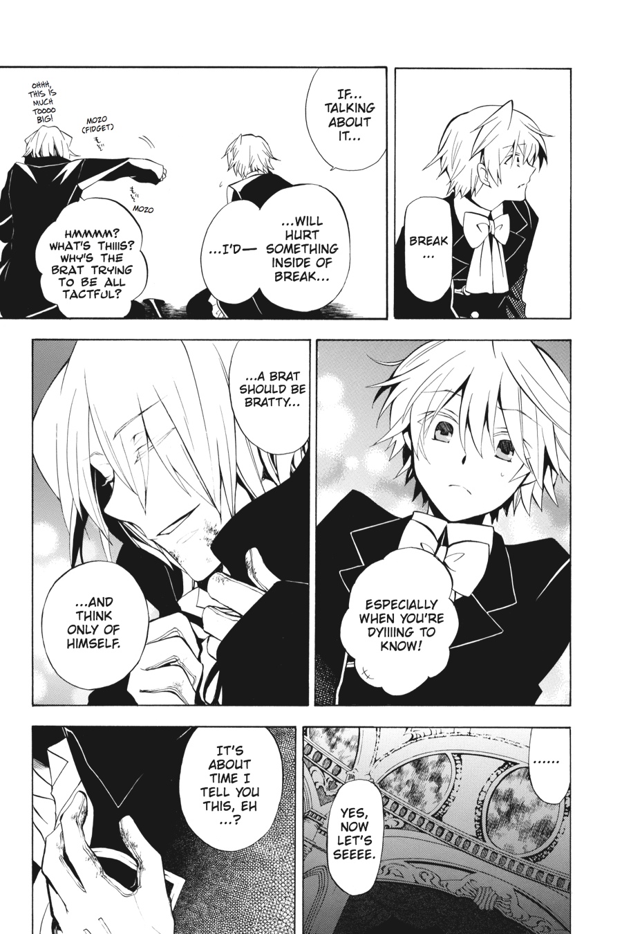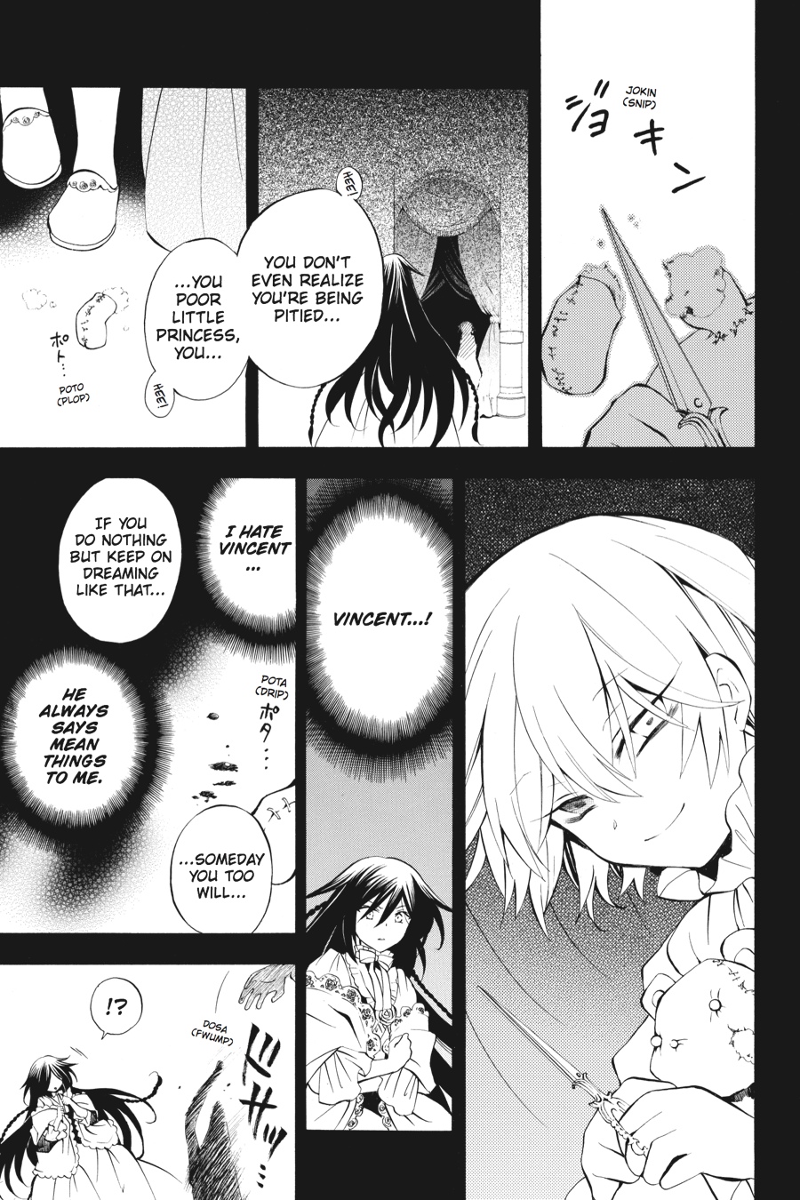 The snow-white maiden encountered once upon a time in the depths of the Abyss by the clown christened the Red-Eyed Specter...who was she really? As there are two sides to every story, could it be there are two sides to the existence known as Alice? Duke Barma may have provided a sordid outline, but Break colors the tale with vivid swathes of bloody crimson as he opens up about his past. Will these tragic truths long secreted away isolate Break further from his allies once he has revealed them?