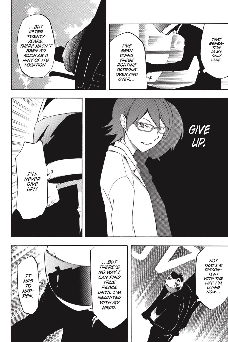Twisted passion accelerates disaster!! After twenty years of searching, Celty, the headless Black Rider, has at last found her missing head-bobbing through the streets of Ikebukuro on someone else's neck! Though Celty pursues, the girl escapes on the arm of Mikado Ryuugamine, taking refuge in his apartment. But with both the legendary Rider and Yagiri Pharmaceuticals bearing down on Ryuugamine in their pursuit of the scarred girl, how can he hope to save his own neck?!