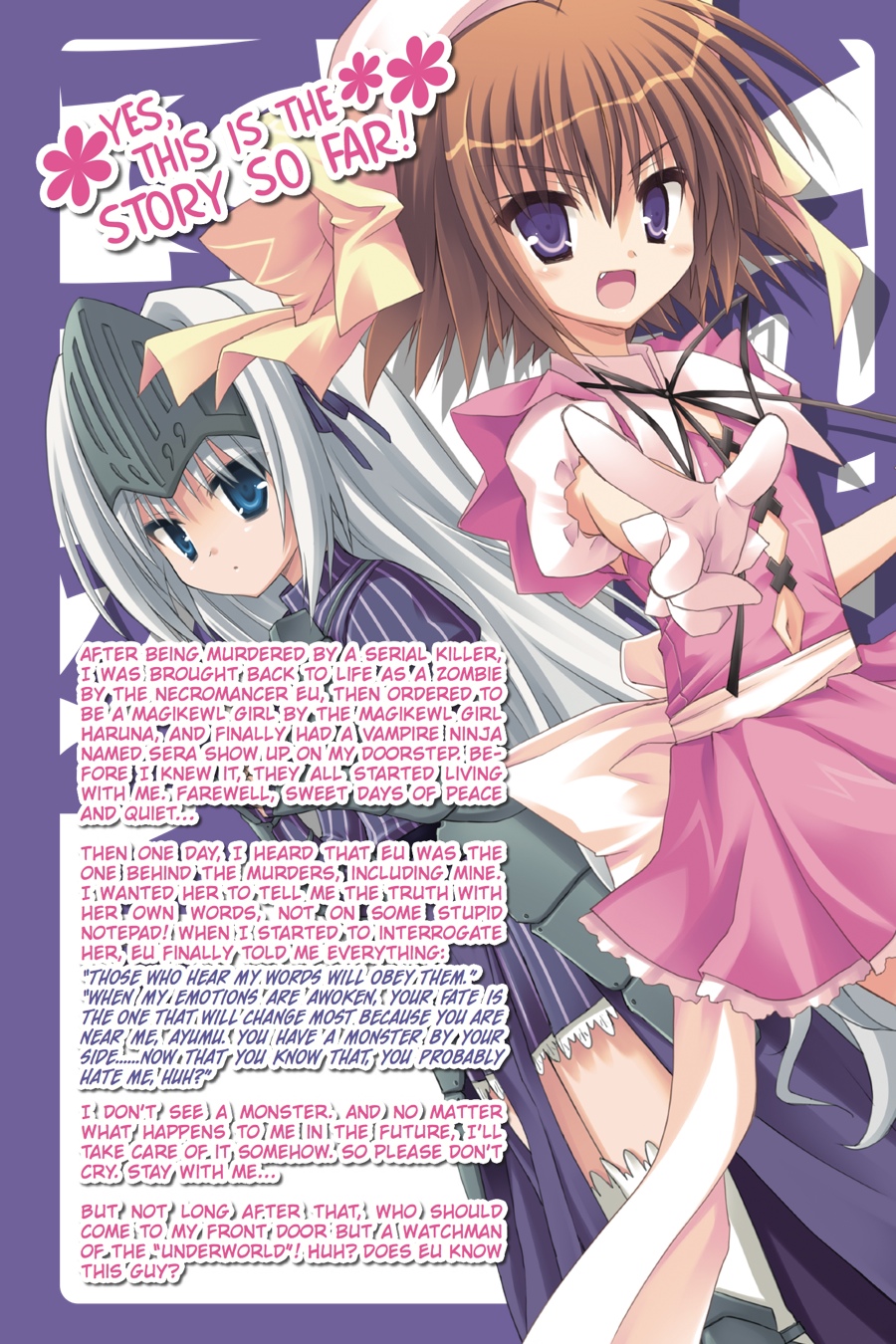 Ayumu Aikawa is settling into his new life - or lack thereof - and enjoying the ties he's building with his new roommates, strange though they may be! But when the opportunity arises to face his murderer, will this zombie/magikewl girl be up to the task??