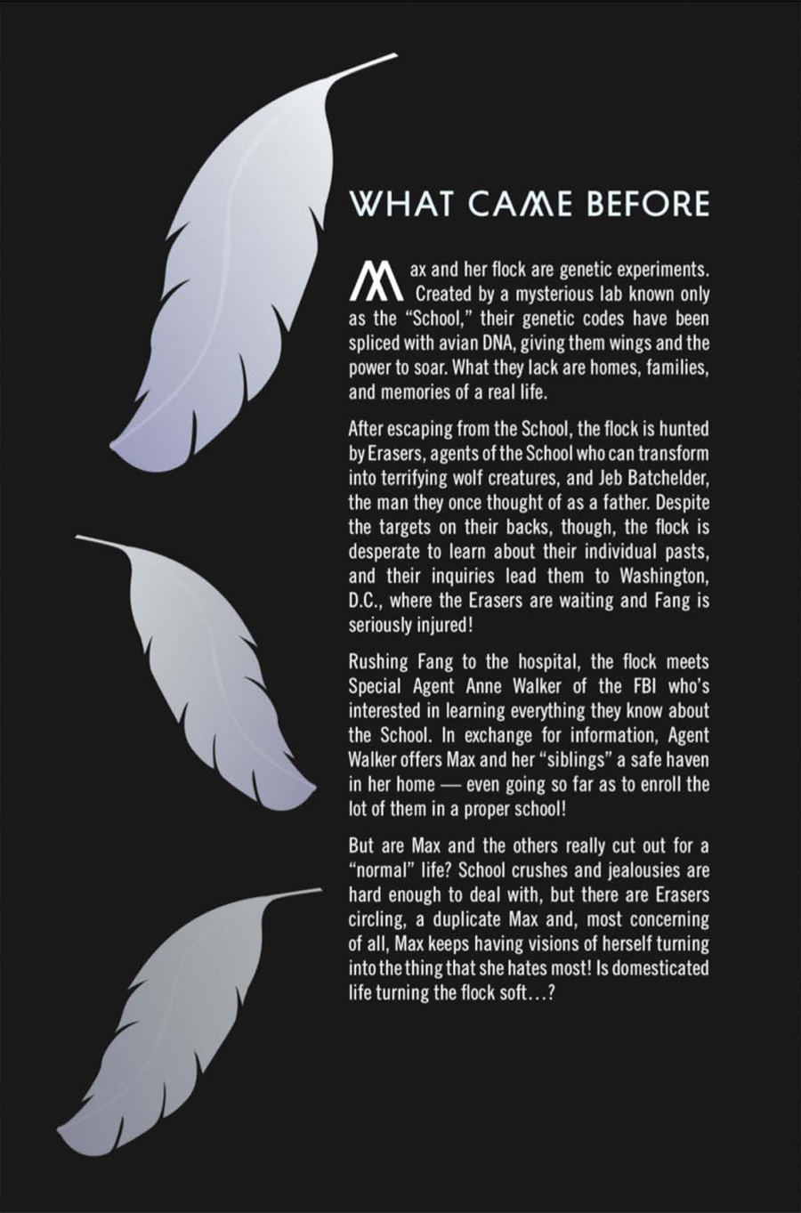 Despite their initial hesitation, living with Anne has softened the Flock, so Max is keenly aware that it's time to leave. With Thanksgiving so near, though, all of them want to stay, at least until they've had their first ever Thanksgiving turkey! But danger is on the horizon as Jeb's plan advances, and while the Flock's new school seems normal and safe, secrets are hidden beneath its prestigious facade...