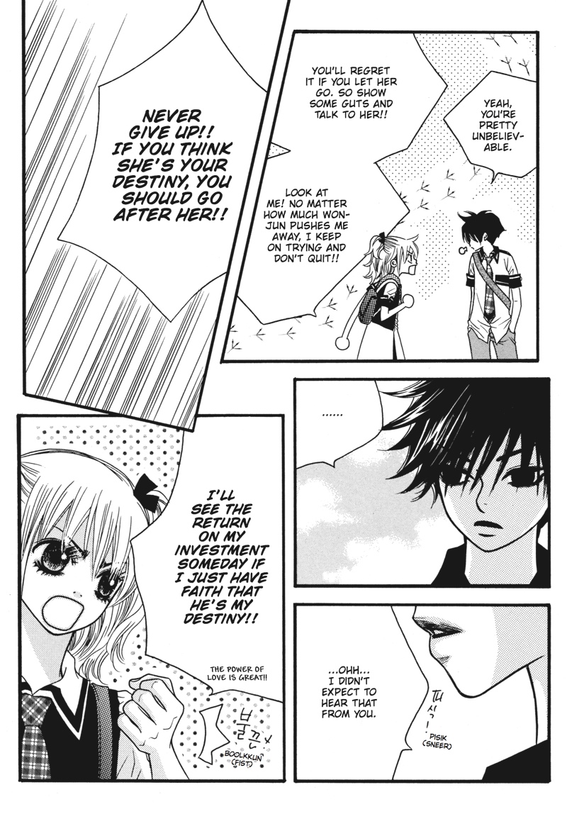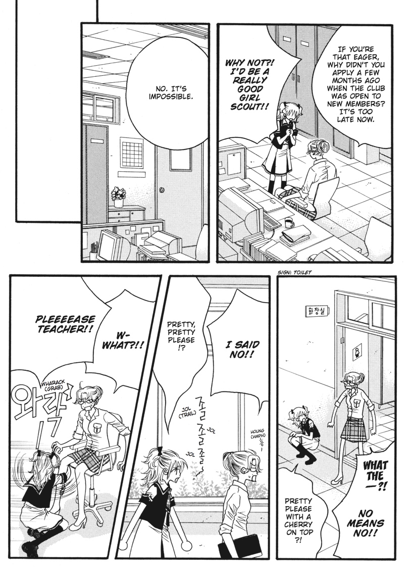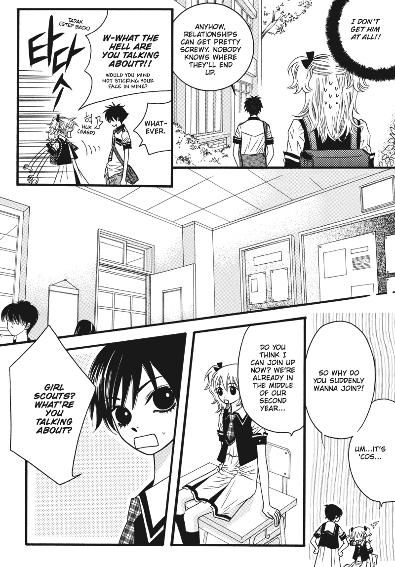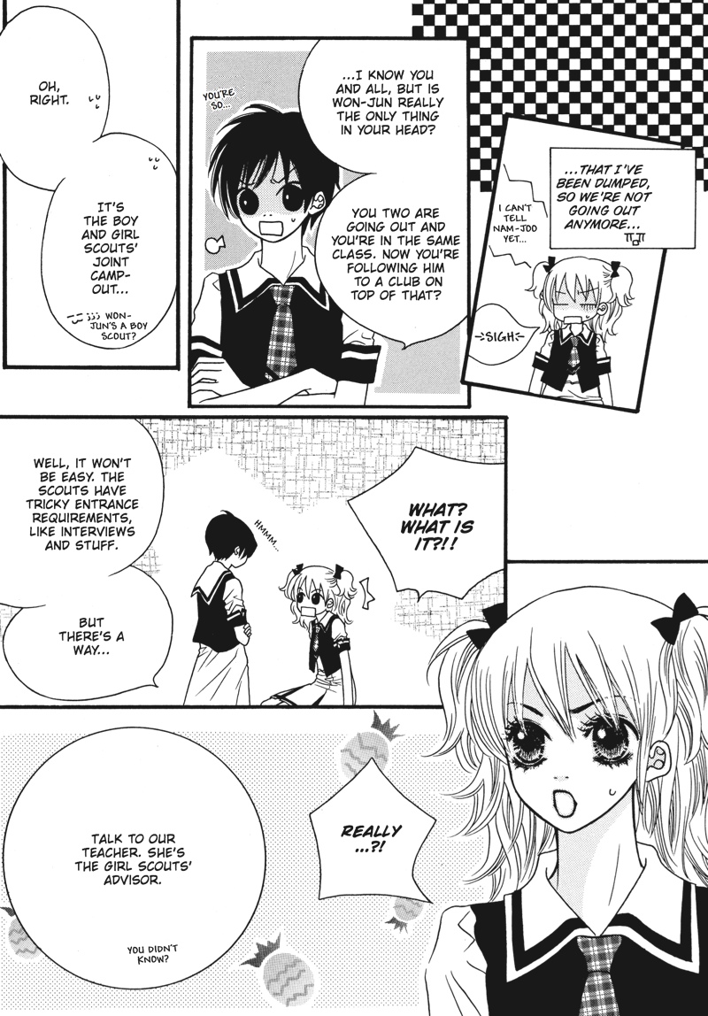 Hee-So joins the Girl Scouts to be closer to Won-Jun after he dumped her. But it's Whie-Young who helps her when she's in trouble. The love triangle twists into a weird quadrangular relationship when it comes out that Sae-Bom likes Whie-Young!