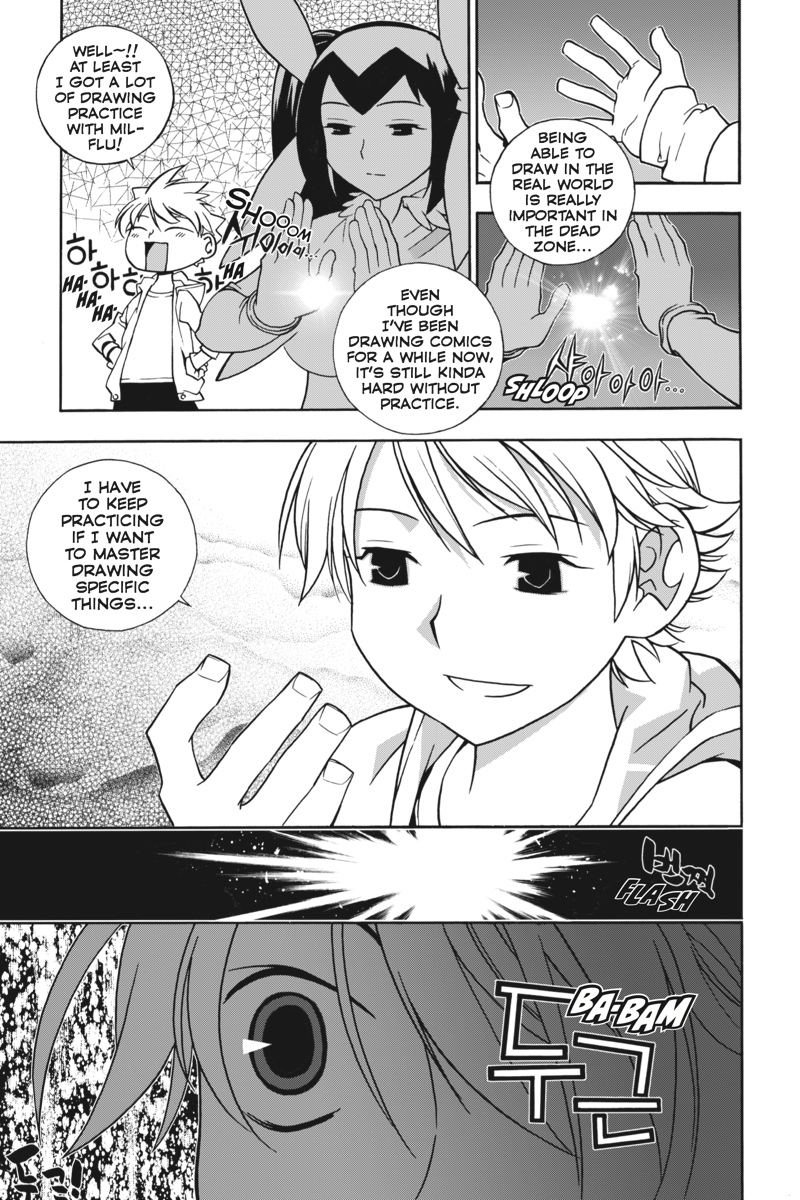 Just as Da-Il finishes erasing a grudge and helping another spirit pass on, a mysterious Croquer and his Zone Keeper invade Da-Il's Dead Zone! Stuck in a fight to the death with the invaders, Da-Il is surprised to learn their true identities. Thanks to a little help from outside forces with their own ulterior motives, the tragic pasts of two talented artists combine to create the ultimate Croquer-Zone Keeper combo in these new opponents! Have Da-Il and Mu-Huk finally met their match?!