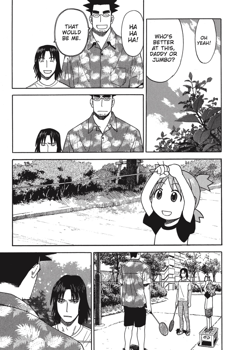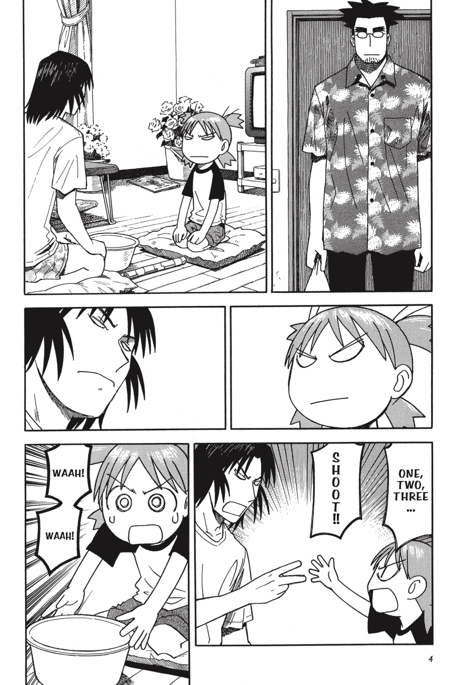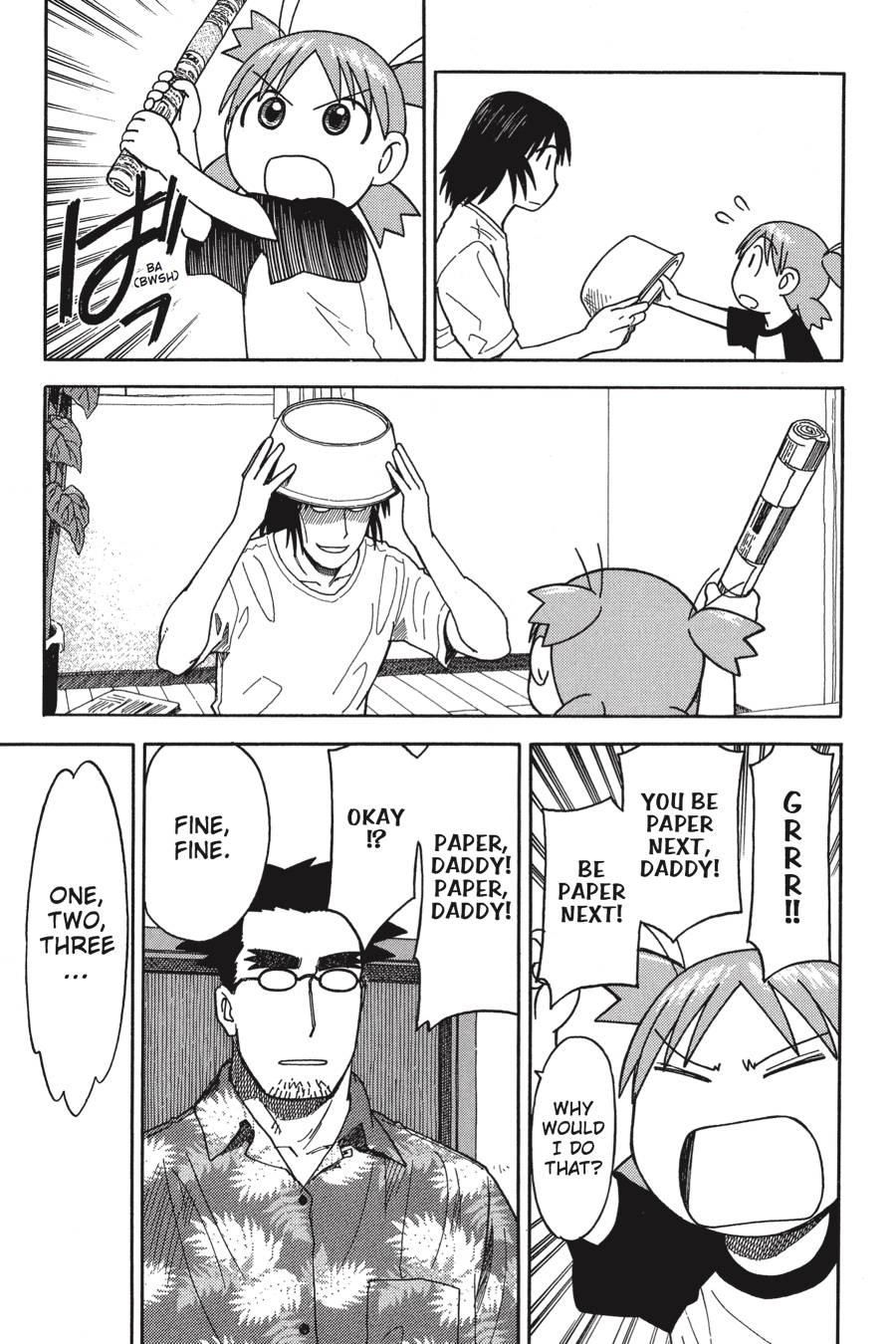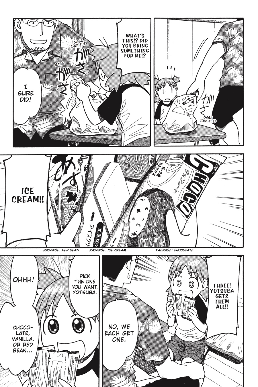 *sniffle* Yotsuba thinks grown-ups are mean. Daddy plays all kinds of neat games with Yotsuba, but he ALWAYS WINS! Even when Yotsuba TELLS him to be paper in Rock-Paper-Scissors, he doesn't listen! Even then! Yotsuba never, ever wants to be a big meanie grown-up, nuh-uh! But grown-ups get to buy ice cream all by themselves, so...um...maybe it's okay to be a grown-up sometimes?