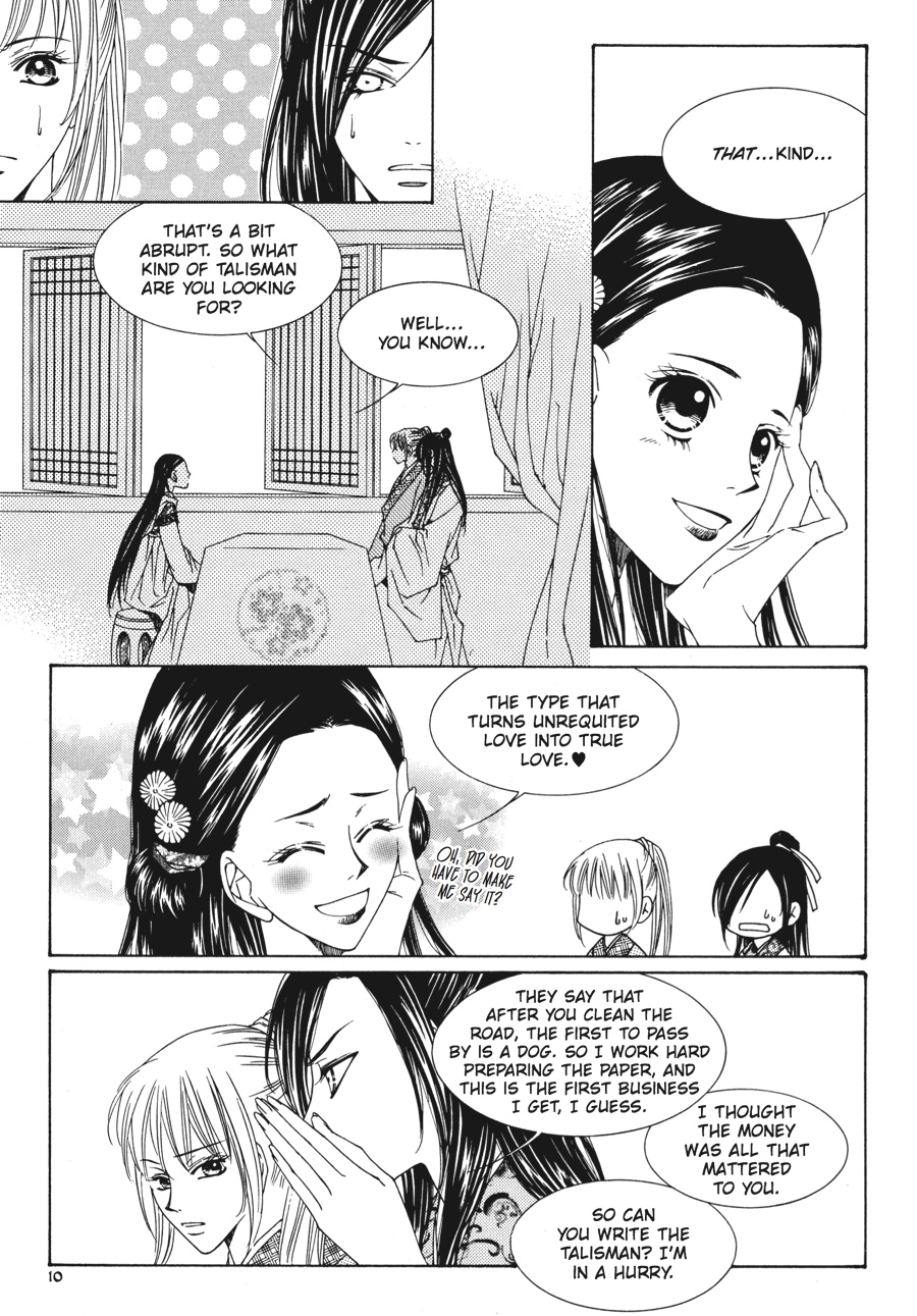 "Why do we even burn with love...when we all become pitiful and sad in the end?"Baek-On has learned a thing or two on his travels dispatching spirits throughout the land: Love is a powerful emotion-even in death. Baek-On has made his fair share of love talismans, but even to someone in the business, the nature of love remains a mystery. Despite his skill, Baek-On is still young and inexperienced, and his hasty decision-making could cost him dearly...