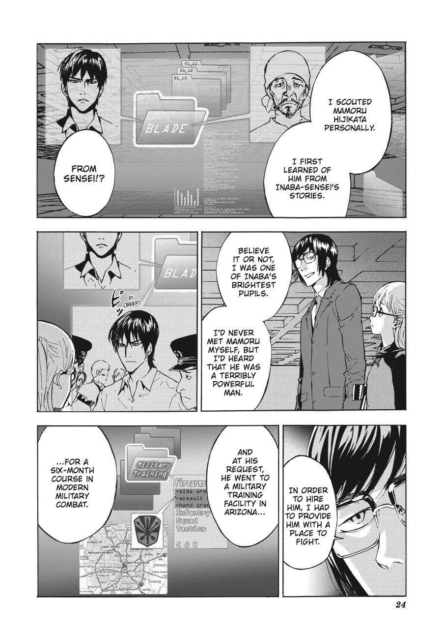 (Volume 1) Haruka Touyama is a twelve-year-old girl with incredible precognitive abilites. But her accuracy in predicting the future has made her a target for any number of greedy corporations that would use her power for their own profits. After she is taken from her family, Haruka uses her gift to seek out someone who can help her escape her captors and fixes upon a blind man making his way through the busy streets of Tokyo. Though it may seem an odd choice, Haruka's powers have not led her wrong. Despite hisinability to see, her chosen protector's fighting skills become apparent when he draws a sword from his walking stick and takes out a corporation's thugs. Haruka knows she will always be pursued and begs the mystery swordsman to keep her safe..."until death do us part."