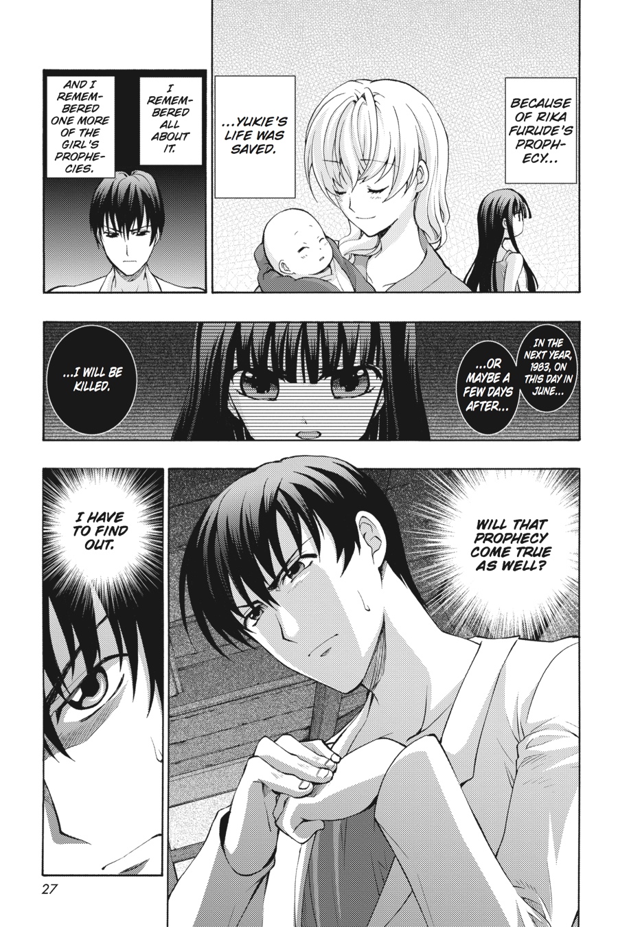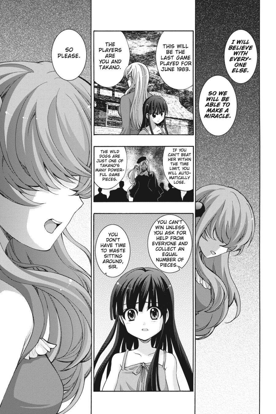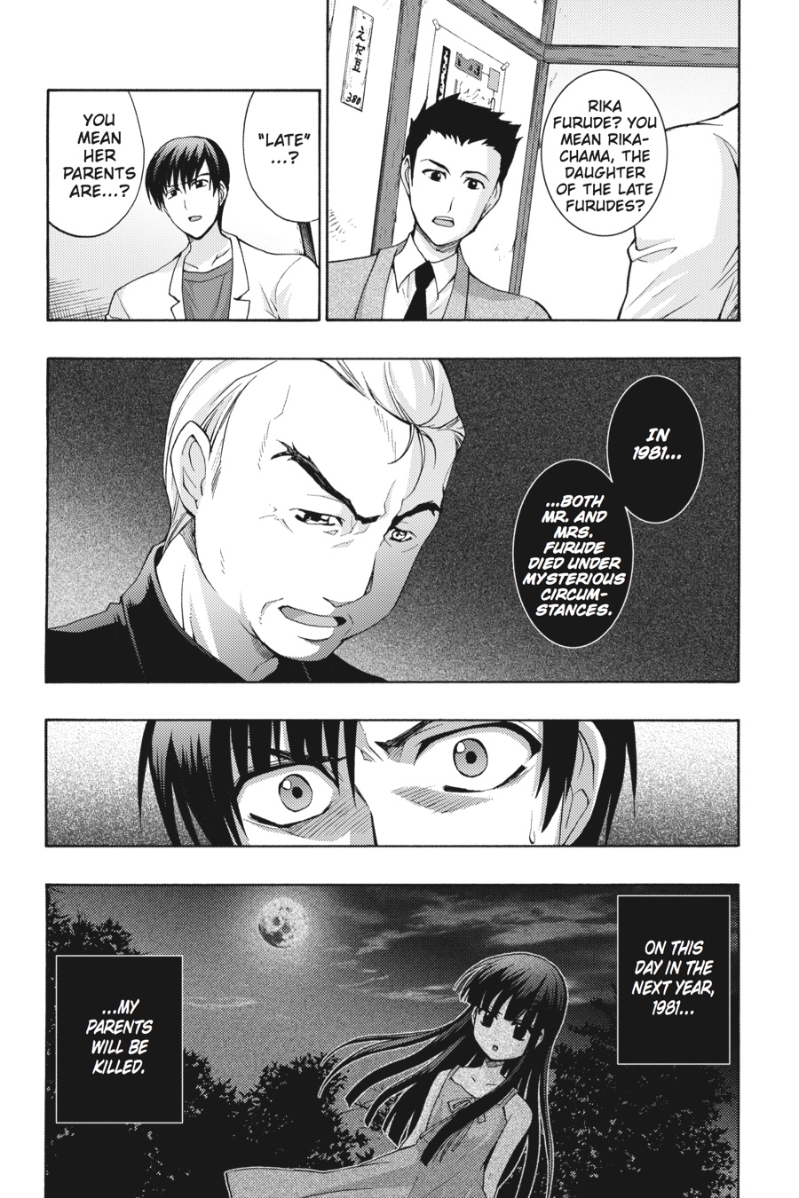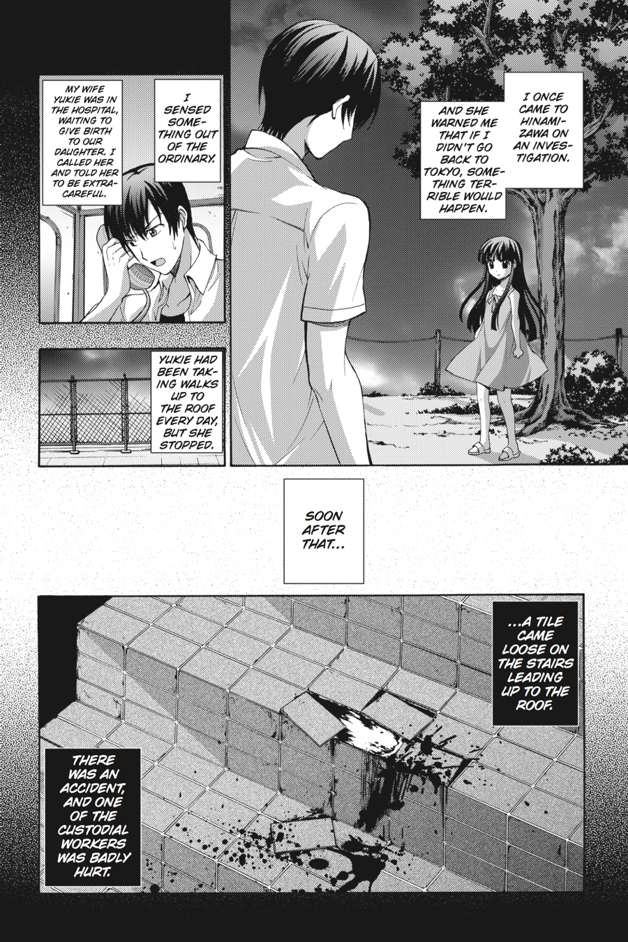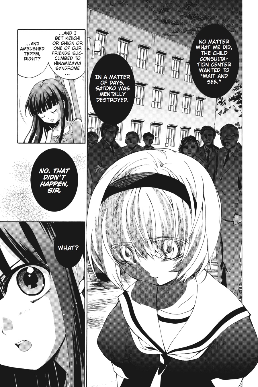 In the final "answer arc" of the New York Times bestselling series, the final pieces of the mystery in Hinamizawa fall into place! After those responsible for the brutal murders are exposed in the Massacre Arc, the last details of the incidents and the events leading up to them come to light. Will Keiichi and his classmates finally find their happy ending in the Festival Accompanying Arc?