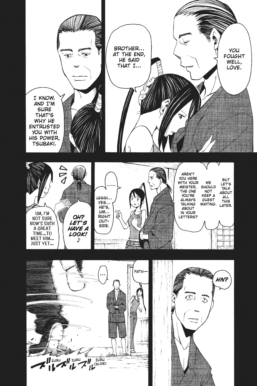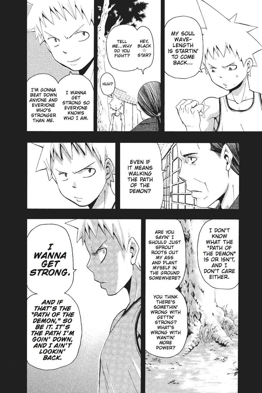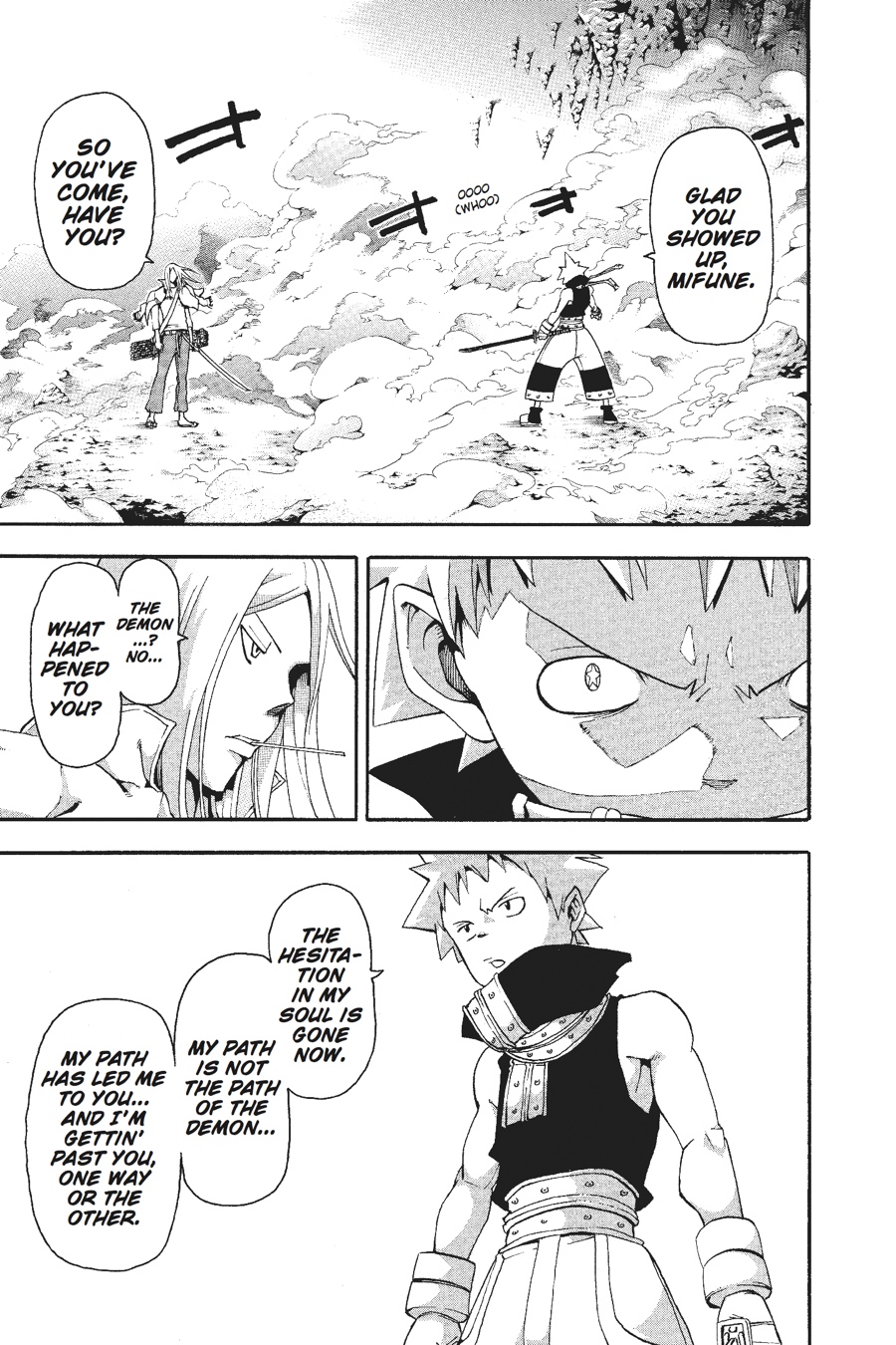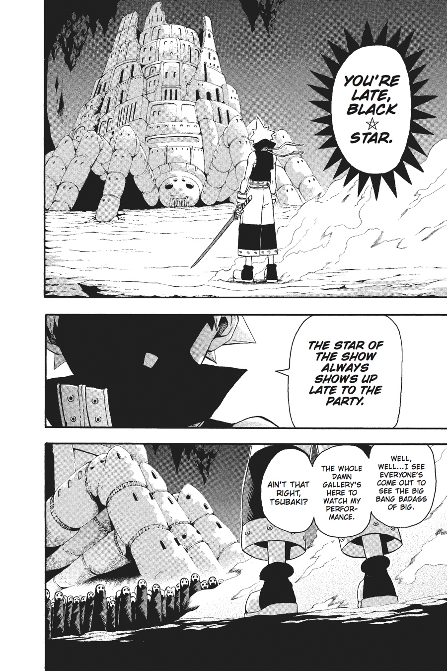 As Maka and a team of DWMA students slip into Baba Yaga Castle in the guise of Arachnophobian guards, Black*Star opts for his usual style of entrance: loud and without a trace of subtlety! But although Black*Star doesn't seem to have changed much on the outside, inwardly he has at last found the way to harness the true power of the Uncanny Sword. And that means he's ready to test his blade in a round three rematch against swordsman Mifune! Will Black*Star's transformation be enough? Or will he once again find himself at the mercy of the great samurai?!