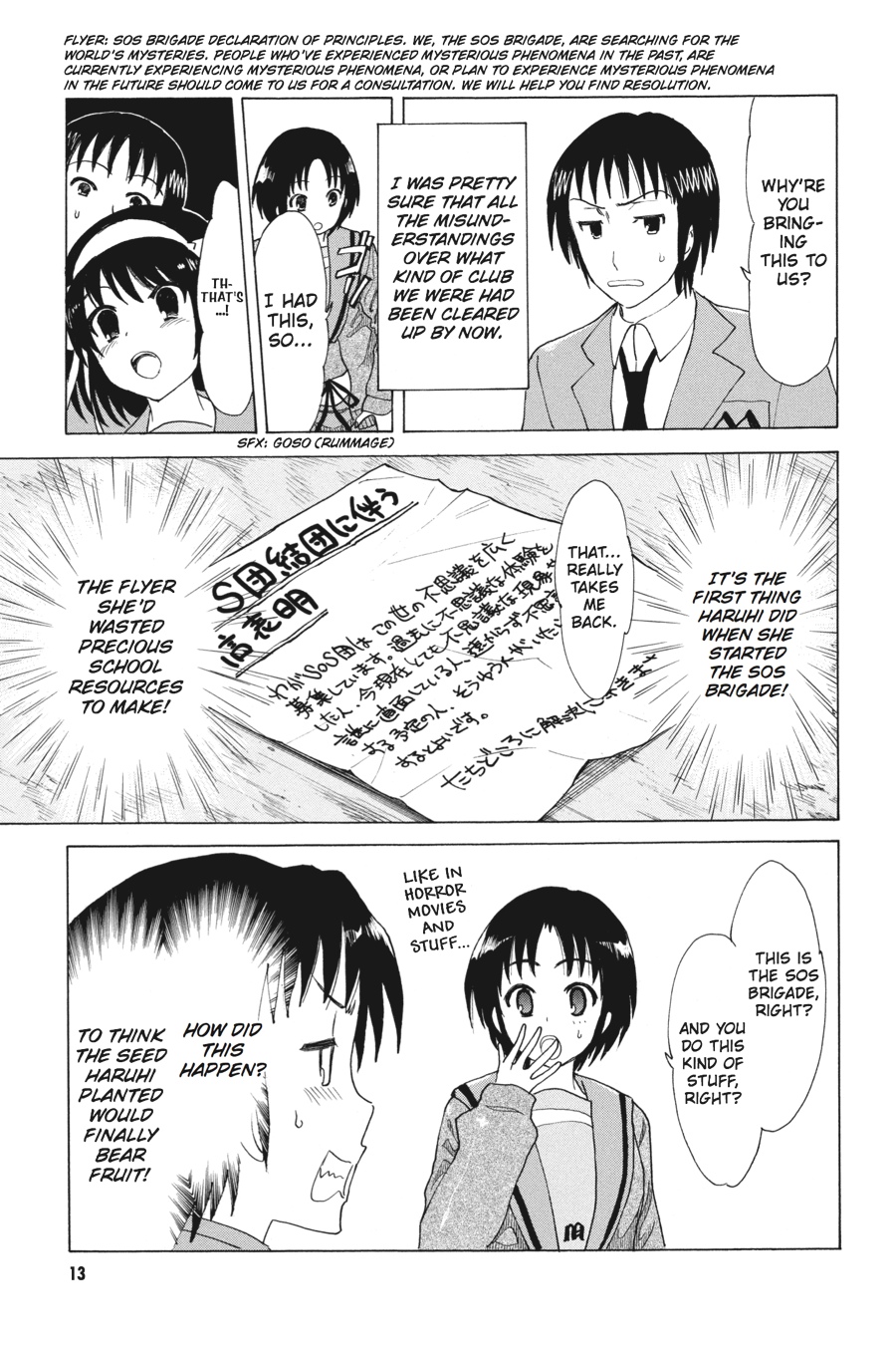Guided only by a series of notes that direct him to do the most inexplicable things-"Buy a small turtle and throw it into the lake"?-Kyon and the Mikuru from eight days in the future complete the assigned tasks, hoping that things will become clear as the SOS Brigade's adventures for that week continue. But Kyon and Mikuru's scavenger hunt soon turns to a manhunt when Mikuru is kidnapped by a group of rogue espers, time travelers, and aliens!