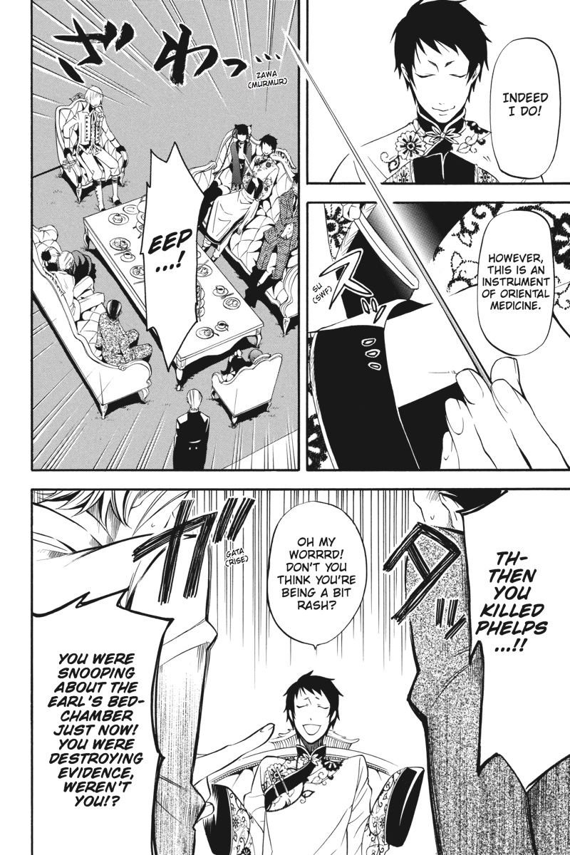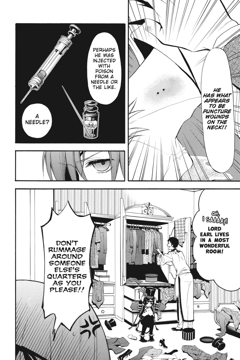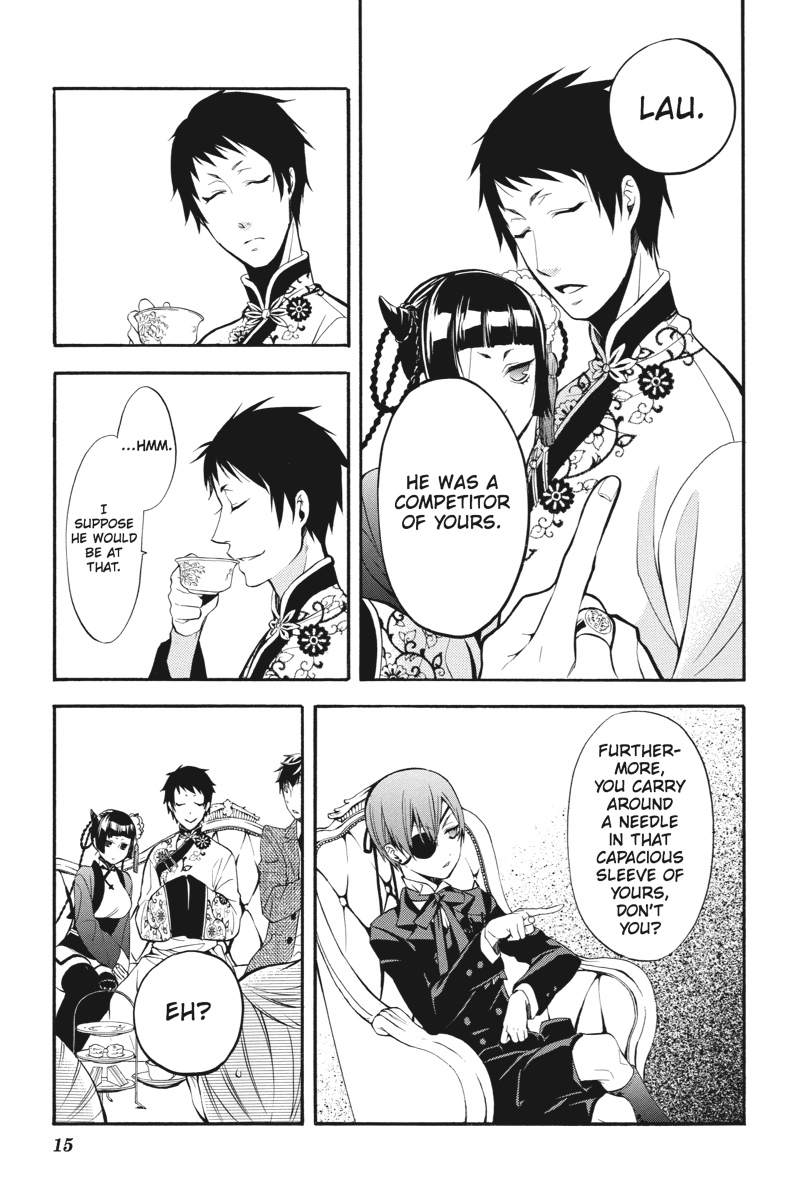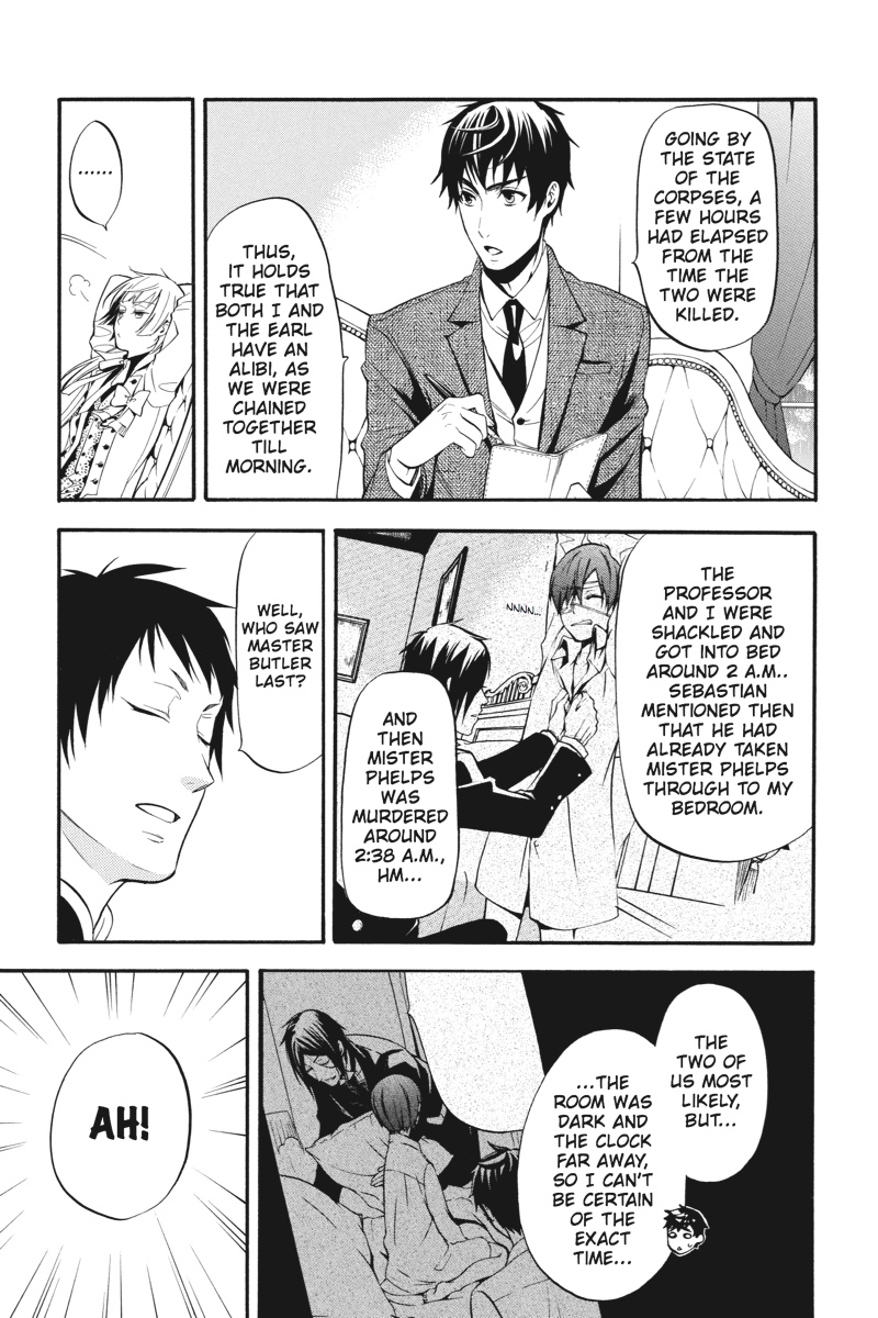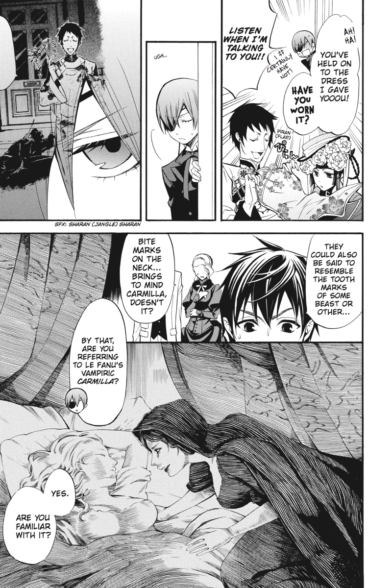 With his royally sanctioned dinner party a shambles and a murderer on the loose, Earl Ciel Phantomhive is a veritable prisoner in his own home, alongside those of his guests who still live. And in the most shocking of turns, the young earl now finds himself without his indispensible manservant, Sebastian. But as the mystery deepens, there arrives upon the young earl's doorstep an odd vicar, wearing an insolent smile and an Inverness cape that flaps and splashes behind him... Is this mysterious thirteenth guest the perpetrator of the crimes that have bloodied the halls of Phantomhive Manor?