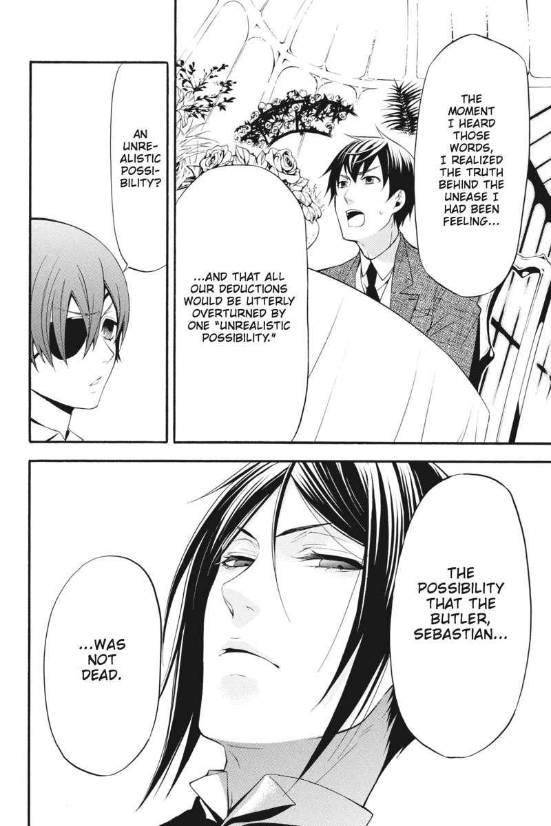 Whispers turn into screaming headlines in Earl Ciel Phantomhive's morning paper as word of the dead being resurrected takes society by storm. But when the unsavoury details of the business reach Ciel's ear, he and his superlative butler, Sebastian, book themselves on a luxury liner to look into these alleged miracles and the "Aurora Society" conducting them. As the waters lap and crash all around the vessel, mysterious individuals gather under the banner of the "Phoenix." Ciel and Sebastian may be one step closer to the truth, but have they sealed their fates by conducting an investigation on what could easily become a floating coffin...?