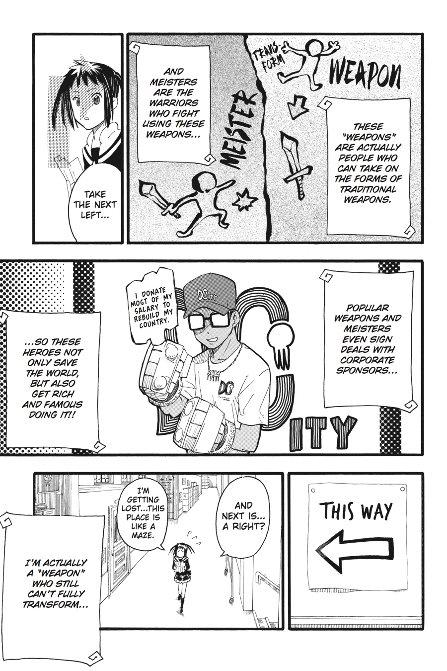 Ding-dong! DEAD-dong! Class is about to begin, and you don't want to be late on your first day of school! Join Tsugumi Harudori in the NOT class at Death Weapon Meister Academy, a school dedicated to training transforming Weapons like Tsugumi and the Meisters who will wield them. Many NOT (Normally Overcome Target) students aspire to join the elite EAT (Especially Advantaged Talent) class, but it may take Tsugumi some time to find her confidence-and a partner-at this crazy school!