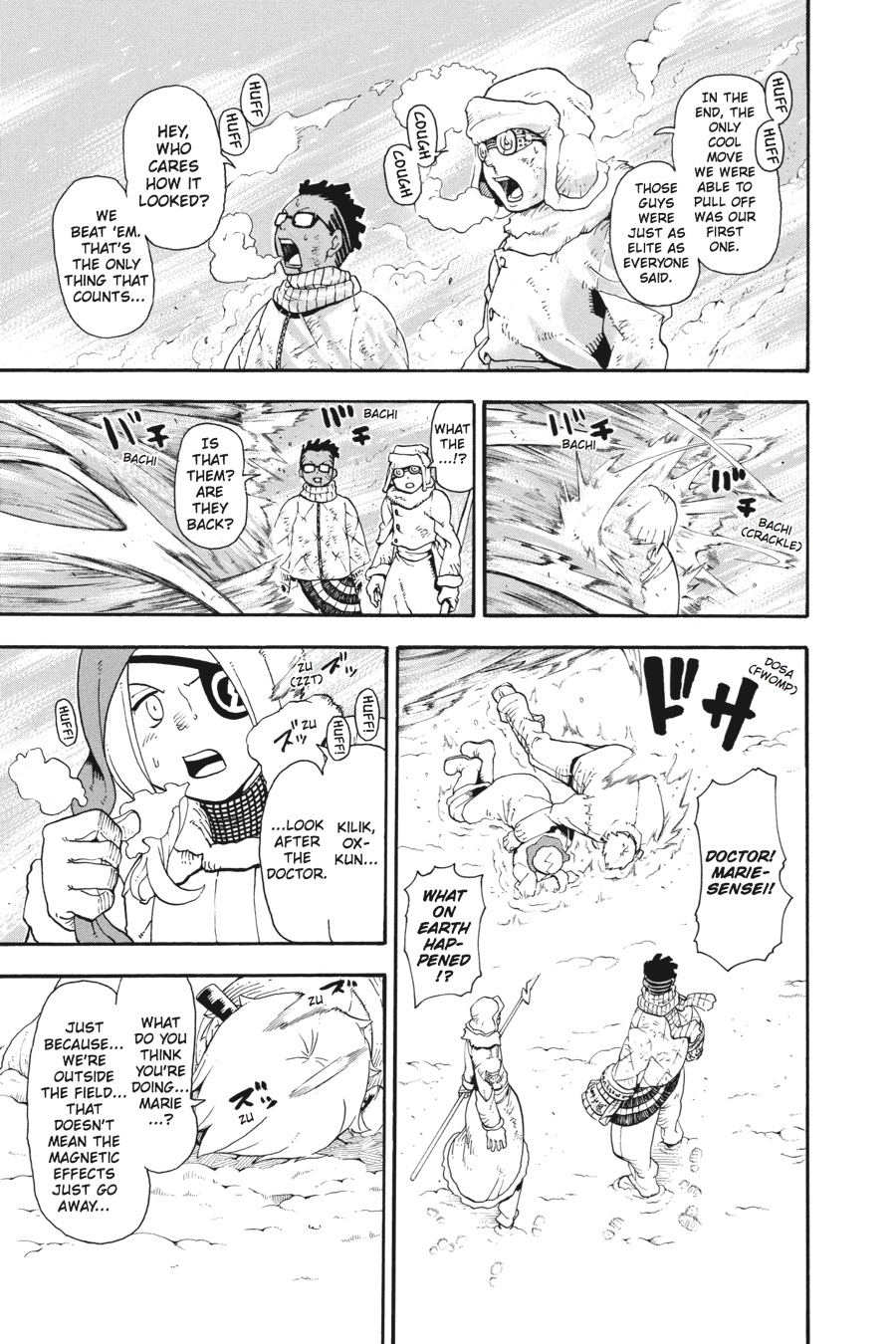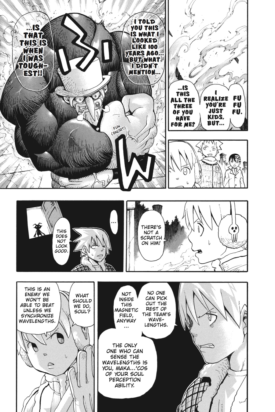 With Doctor Stein unable to carry on, Maka, Kid, and Black*Star enter the magnetic field to take up the mission and locate the tempestuous demon tool known as Brew. Time is quickly running out as the three face off against Mosquito, struggling to harmonize their wavelengths within the magnetized vortex. They'll be lucky to escape with their lives, let alone the demon tool!