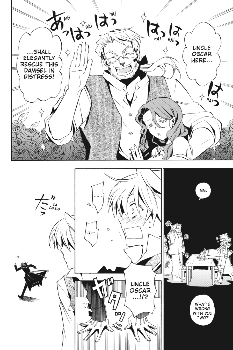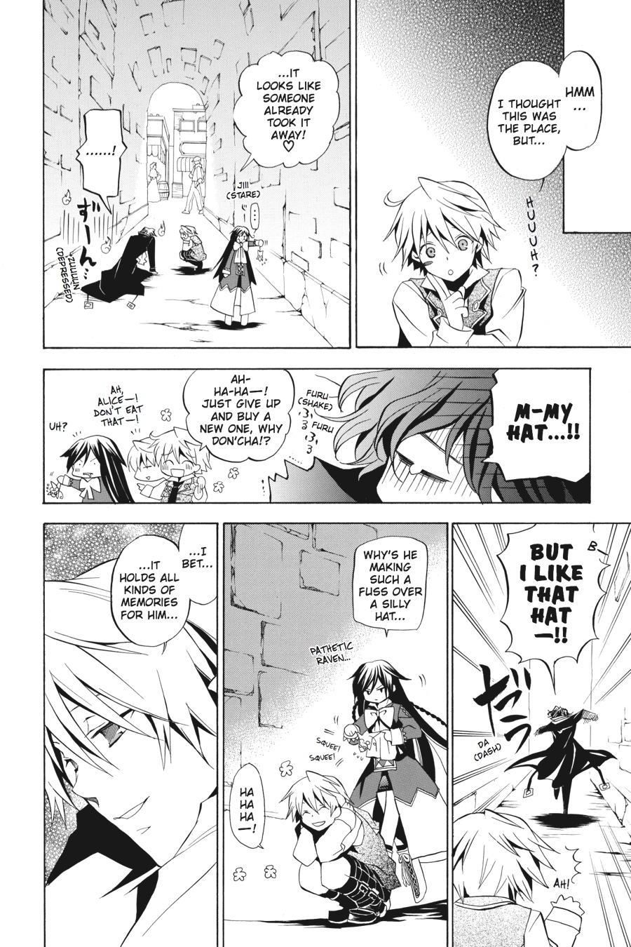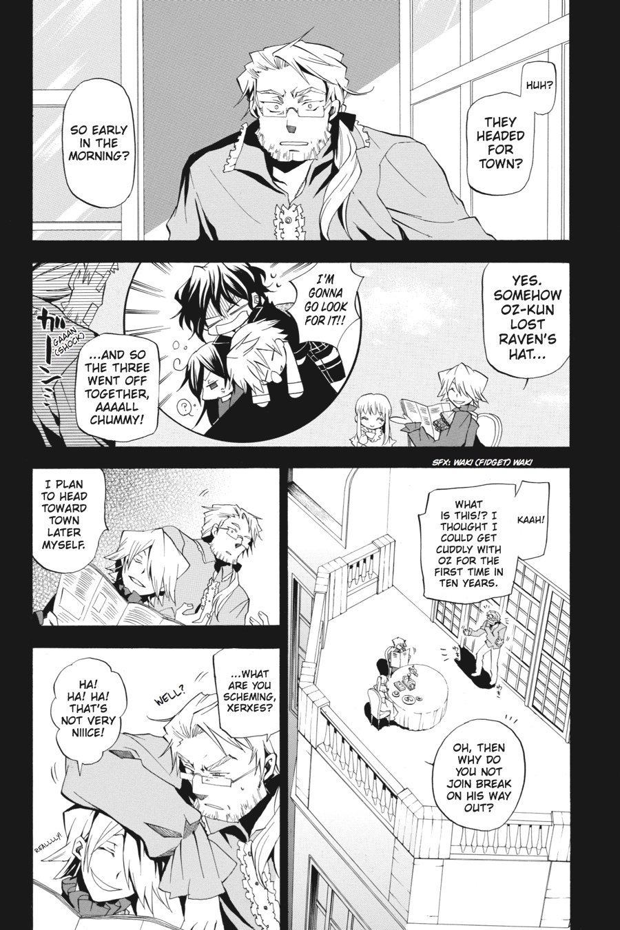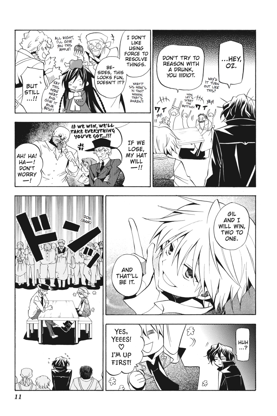 As Oz Vessalius and his valet, Gilbert, are reunited with their dear Uncle Oscar, they fail to notice an alienated Alice lost in thought stumbling right into the lurking Xerxes Break. Before Alice can take heed of Break's warning of a trap set by the Cheshire Cat - a powerful, extraordinary chain - she and Break are spirited away to Cheshire's lair, where both danger and fragments of Alice's past reside. With Sharon's help, Oz and Gil find a way to enter the sealed dimension of memories, but not only do their allies await them there, so too does the man from Alice's earlier memory! Does he hold the key to the truth about Oz's "sin"?