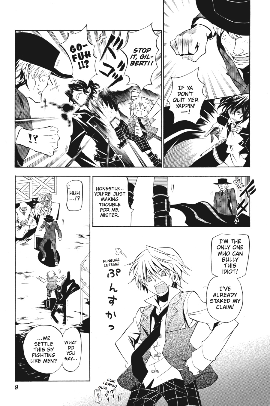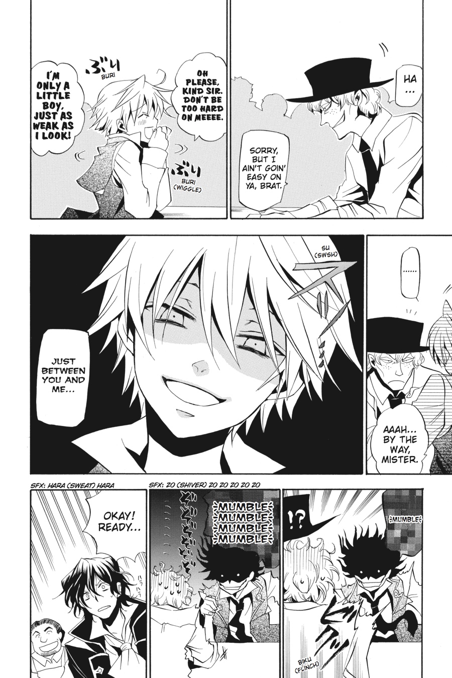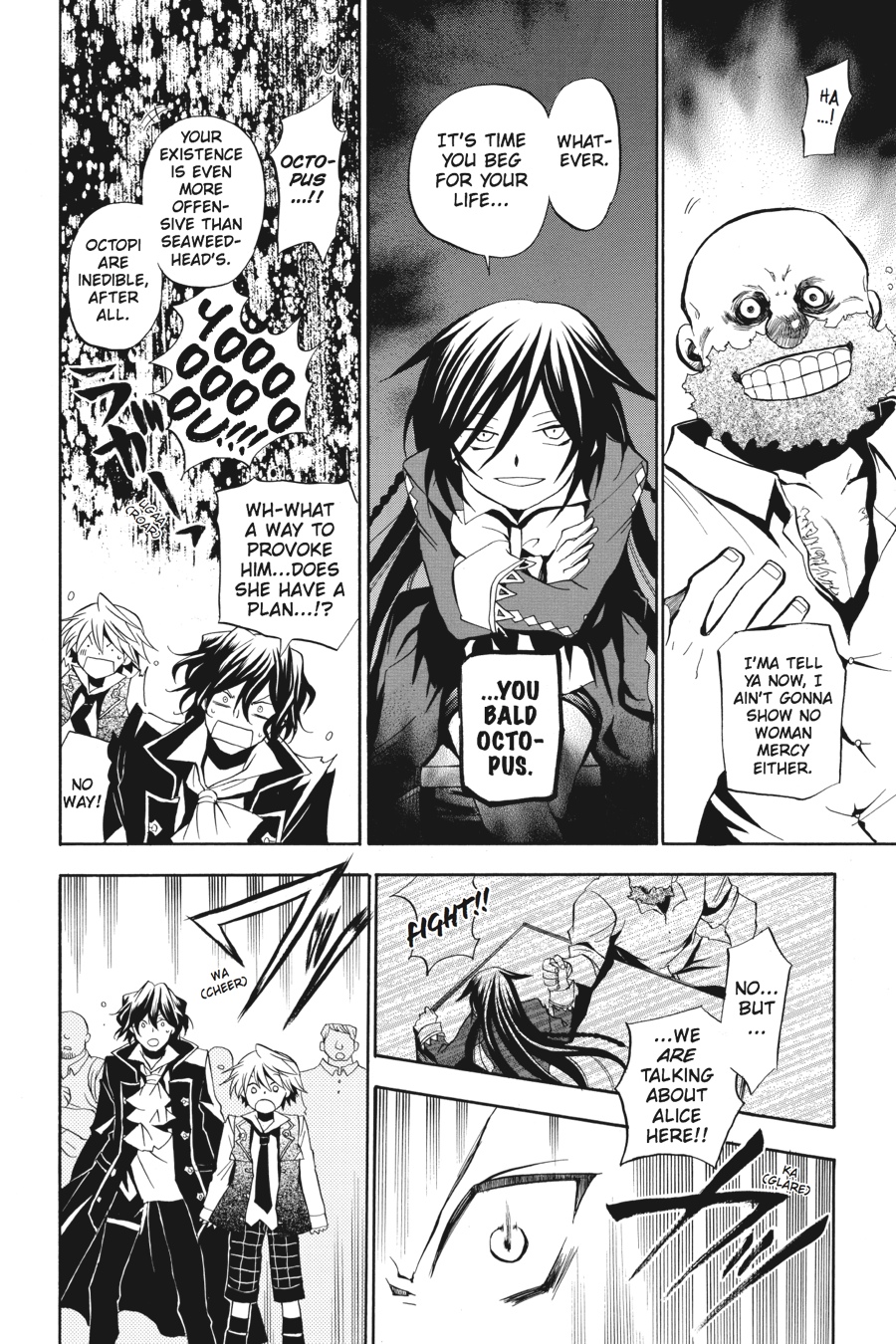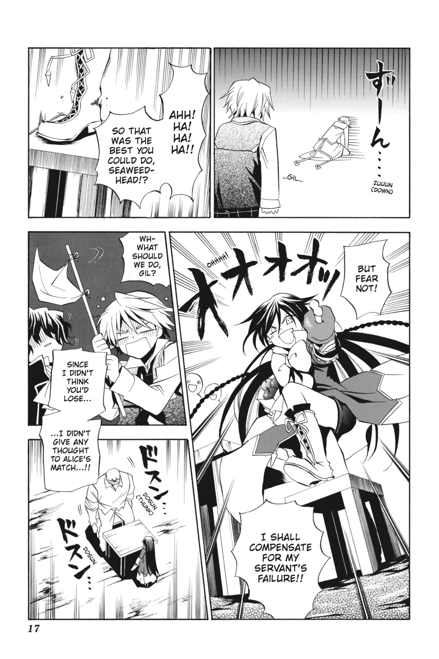 As Oz Vessalius and his valet, Gilbert, are reunited with their dear Uncle Oscar, they fail to notice an alienated Alice lost in thought stumbling right into the lurking Xerxes Break. Before Alice can take heed of Break's warning of a trap set by the Cheshire Cat - a powerful, extraordinary chain - she and Break are spirited away to Cheshire's lair, where both danger and fragments of Alice's past reside. With Sharon's help, Oz and Gil find a way to enter the sealed dimension of memories, but not only do their allies await them there, so too does the man from Alice's earlier memory! Does he hold the key to the truth about Oz's "sin"?