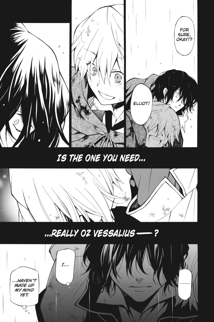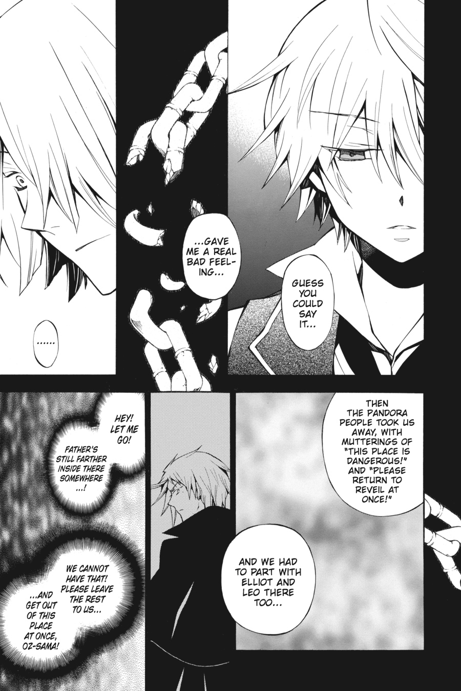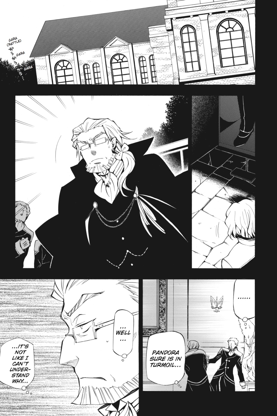 Sablier, Jack Vessalius made a valiant sacrifice to stop his best friend, Glen Baskerville, by allowing his body to anchor a set of seals by which Glen's soul was confined. But now these seals, long guarded by mages under the watchful gaze of Pandora, are being smashed one by one at the hands of the Crimson Shinigami, whose aim is to return their master to his once-whole state. And so, the fragile peace achieved over the last century begins to writhe, like a horror released from Pandora's forbidden box...