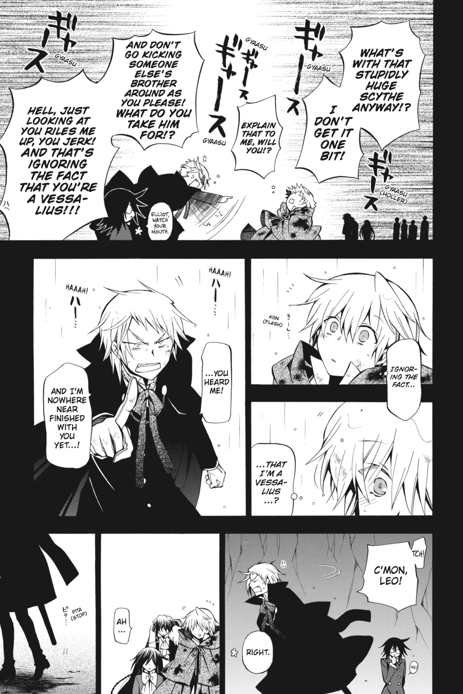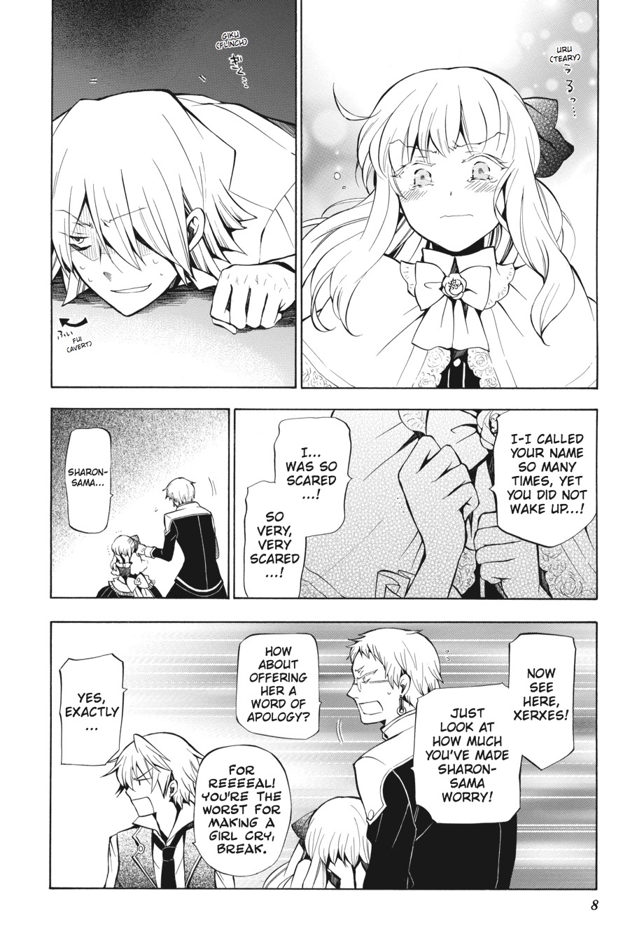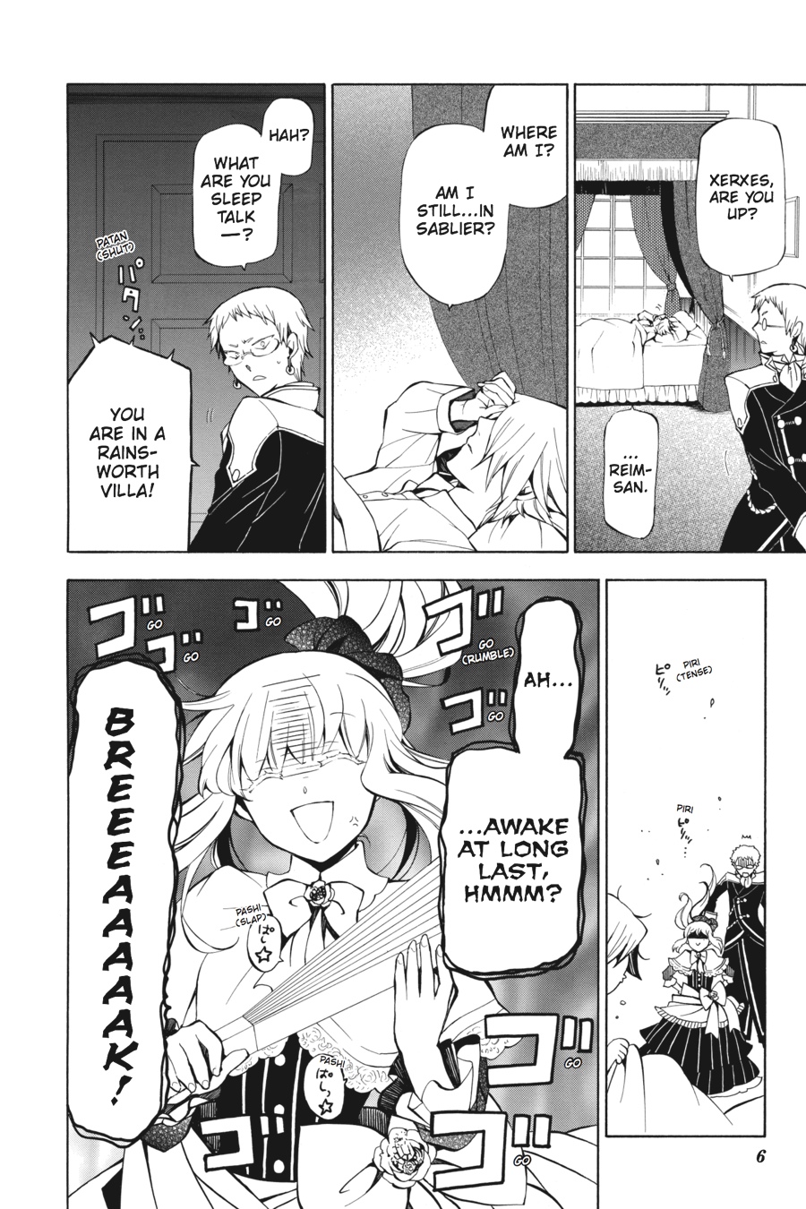 Sablier, Jack Vessalius made a valiant sacrifice to stop his best friend, Glen Baskerville, by allowing his body to anchor a set of seals by which Glen's soul was confined. But now these seals, long guarded by mages under the watchful gaze of Pandora, are being smashed one by one at the hands of the Crimson Shinigami, whose aim is to return their master to his once-whole state. And so, the fragile peace achieved over the last century begins to writhe, like a horror released from Pandora's forbidden box...