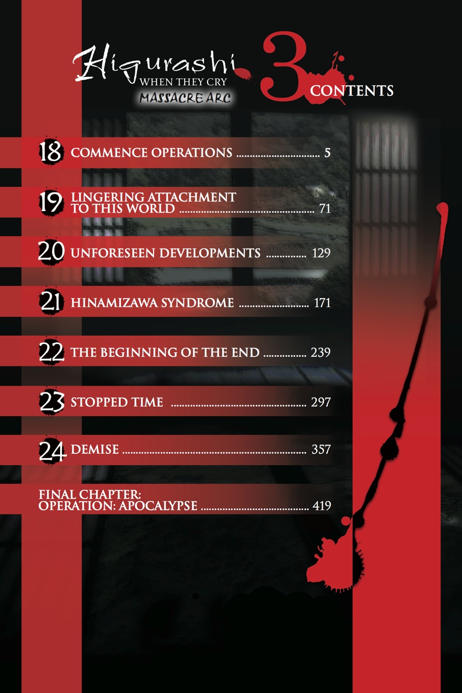 Watching the people of Hinamizawa rally together to liberate her friend Satoko gives Rika hope that she too can defy fate and curb her tragic demise. But when the bodies of Takano and Tomitake are discovered, Rika fears her chance is slipping away. Not knowing who to trust and not wanting to put anyone else in danger, Rika pulls away from her friends. But as her experiences in this world continue to diverge from the norm, Rika clings to the hope that the events that lead to her murder might also change. She has the will to change her destiny, but will that be enough to defeat whoever-or whatever-wants her dead?