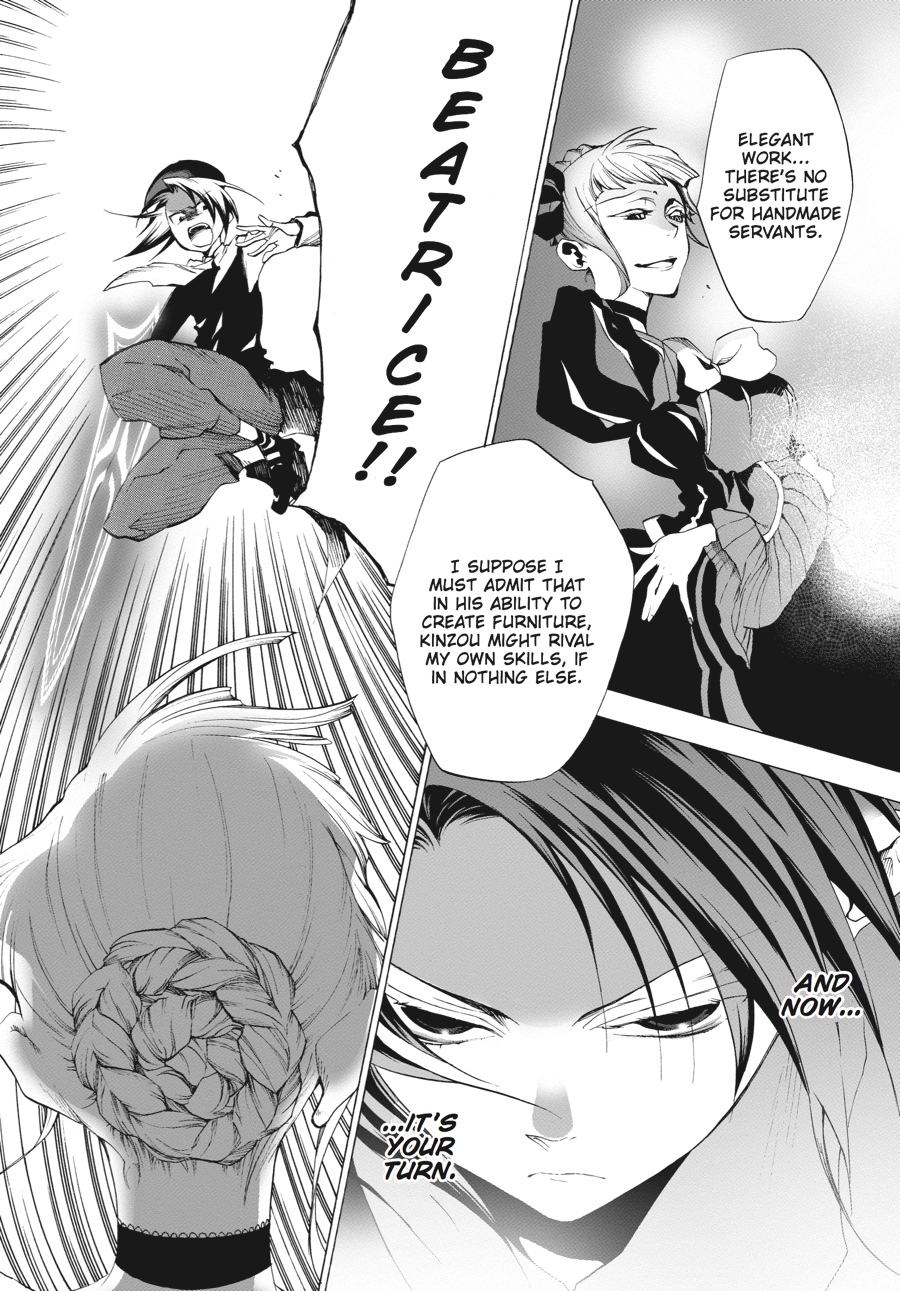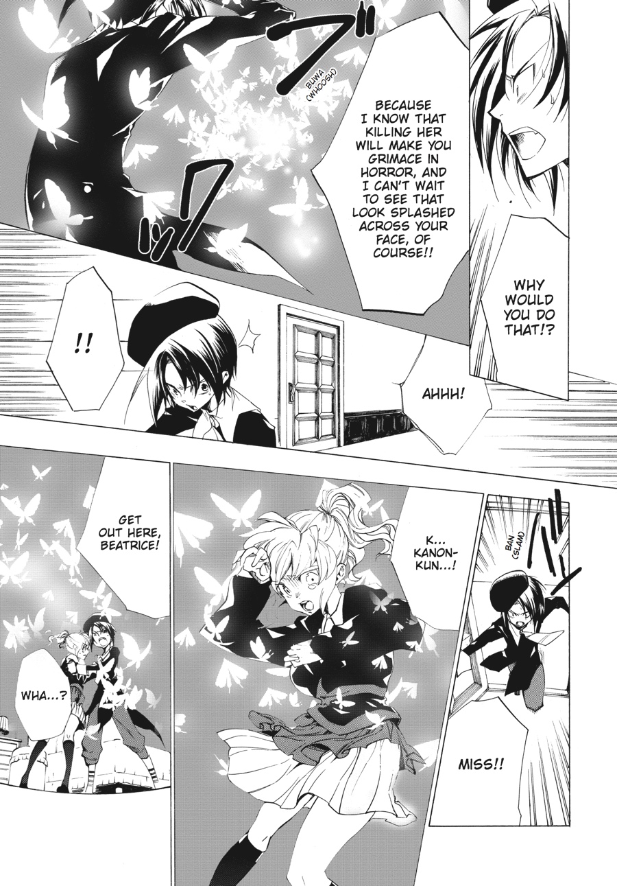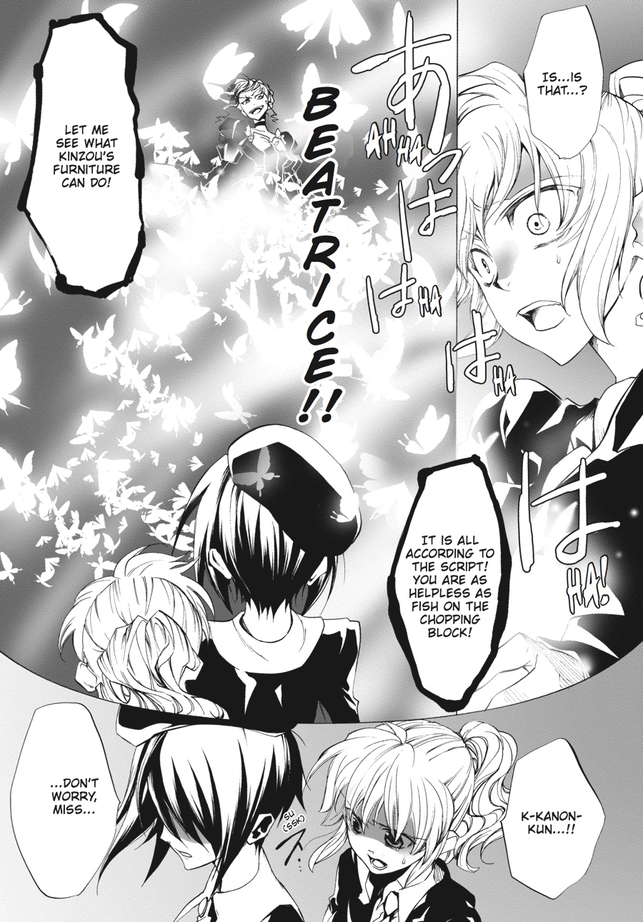 With the six sacrifices of the first night claimed, Beatrice, the Golden Witch, turns her attention to selecting the sacrifices for the second night: the "Two Who Are Close." As the corpses begin to pile up, Battler struggles to disprove that the deaths can only be explained by the existence of magic, and the crafty Beatrice is using every strategy in her playbook to trip him up. Logic and truth perform an acrobatic dance in which a single misstep could spell certain death. Can Battler defeat Beatrice in this match of wits and wills? Or will he find himself kneeling at the witch's feet?!