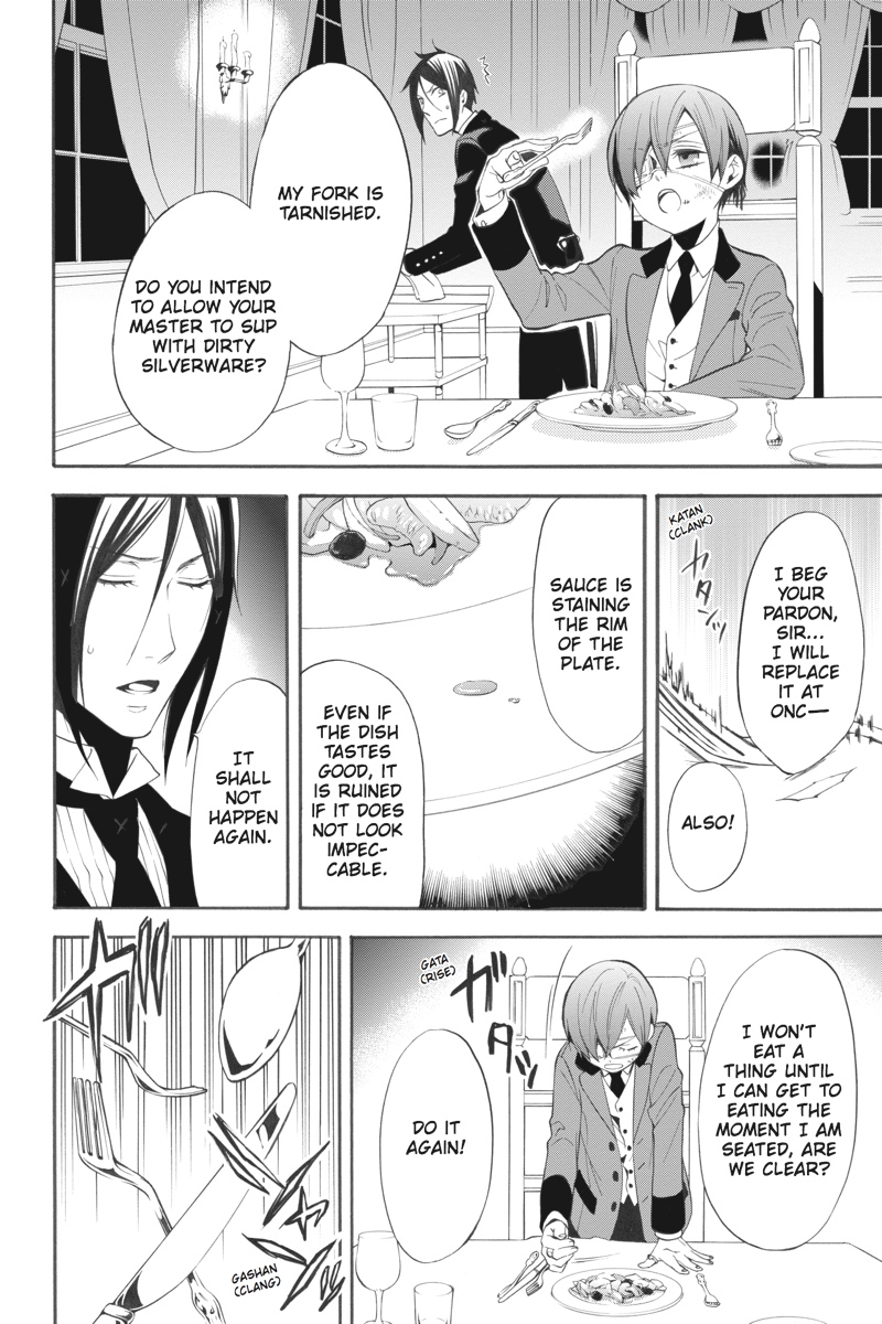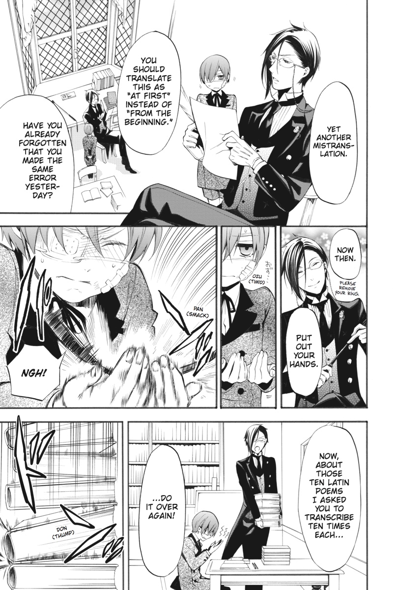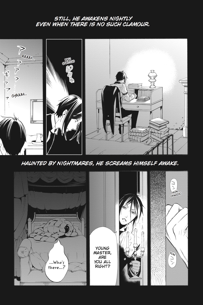 The veil of mystery cast over the Aurora Society's "absolute salvation" is torn away, and the true mastermind behind the scheme steps forward at long last. In the ensuing battle, Earl Ciel Phantomhive looks on in horror as Sebastian, his infallible manservant, is struck down by the death scythe of an unforeseen combatant. Devil though he may be, even Sebastian is not immune to the blade of a reaper's scythe. As Sebastian's cinematic record spills forth, the tale of how a devil became a butler to a little lost lord flickers to life in shades of sepia, blood, and ash...