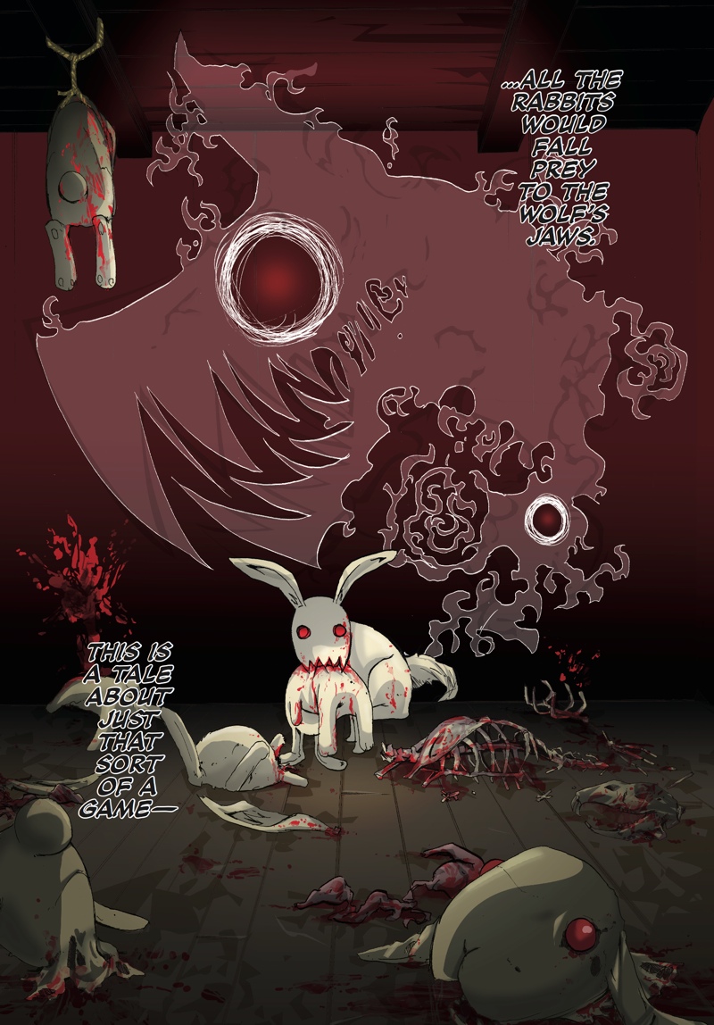 Rabbit Doubt-a mobile phone game-has taken Japan by storm. In it, players are rabbits who must uncover the wolf in rabbit's clothing before falling prey to its mistrust-sowing wiles...as well as its teeth. When a group of teen players decides to meet offline for fun, the last thing they expect is to lose consciousness and wake up trapped in an abandoned building, mysterious bar codes tattooed on their bodies, and a corpse strung up in front of them. To stay alive and find a way out, they have but one option-to sniff out the lying wolf in their midst. Will these virtual acquaintances be able to pull it together in the real world and figure out what's going on in time to avoid ending up as the wolf's dinner?