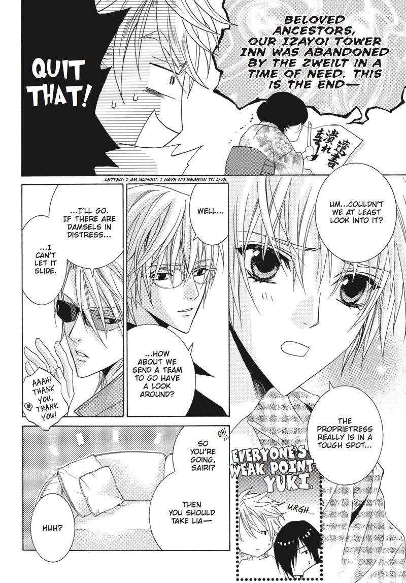 Though the Zweilt are together at last, the calm before the inevitable storm of battle lingers. With no sign of activity from the camp of their sworn enemy, Reiga, Yuki and his allies are beguiled into a sense of peace. But even the distraction provided by a retreat to the Hidden Springs of the Giou to rest weary hearts and souls will not prepare Yuki for Sairi's revelations about the brave but terrible end met by the Light of God through the ages...And when Takashiro is called in to investigate a pair of suspicious deaths, the winds of war begin to pick up in a frenzy...