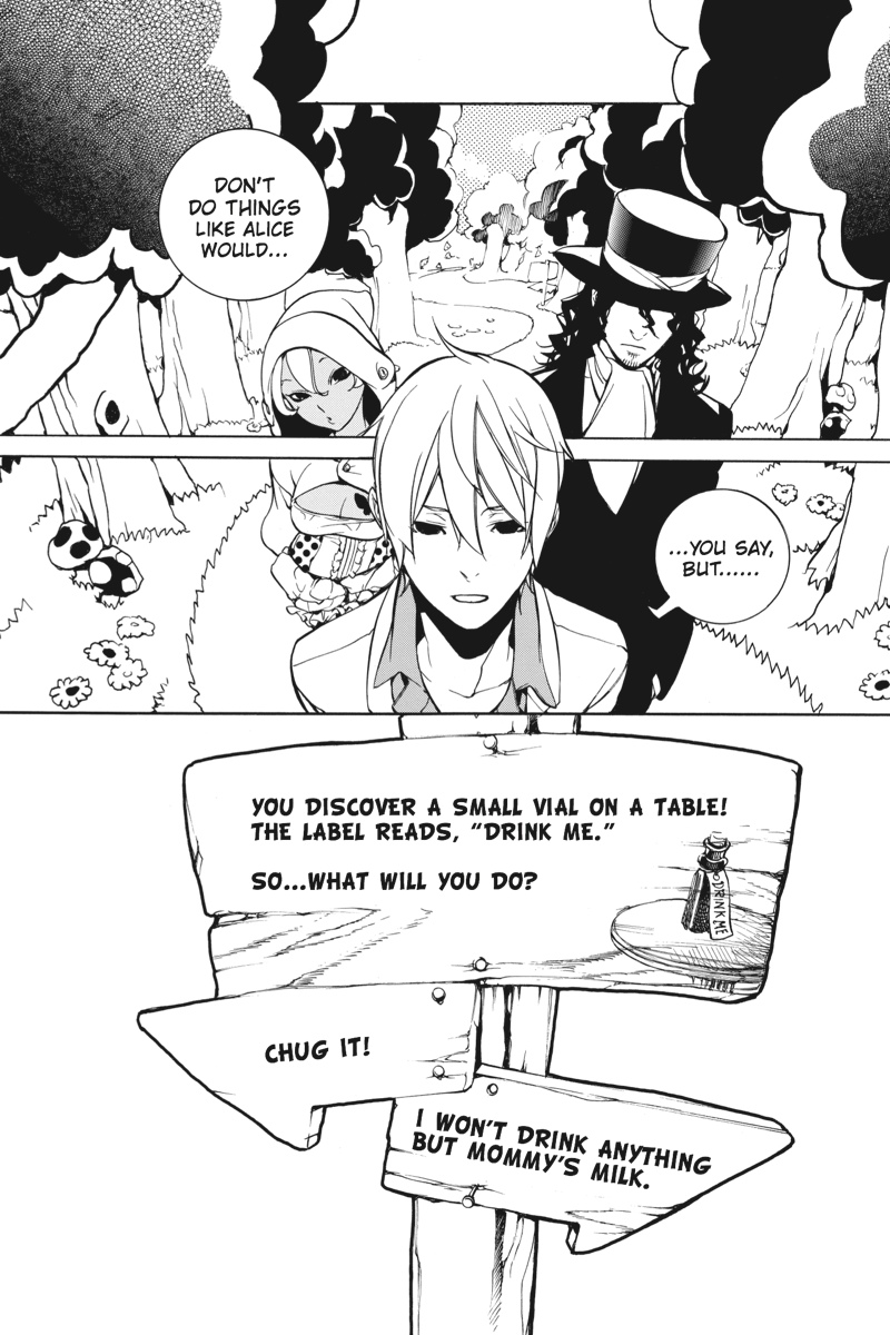 A boy who has discarded all his dreams loses his way in 'Wonderland', where he discovers that he possesses the name of 'Alice', one that is vital to the 'Kill the White Rabbit Game'. In this mad tale, common sense is out the window, and all are bound by both the rules of the 'game' and the commands of the Queen of Hearts. Amidst the insanity, Alice decides to pick up a cold, glittering gun and shoot his way to his own identity.