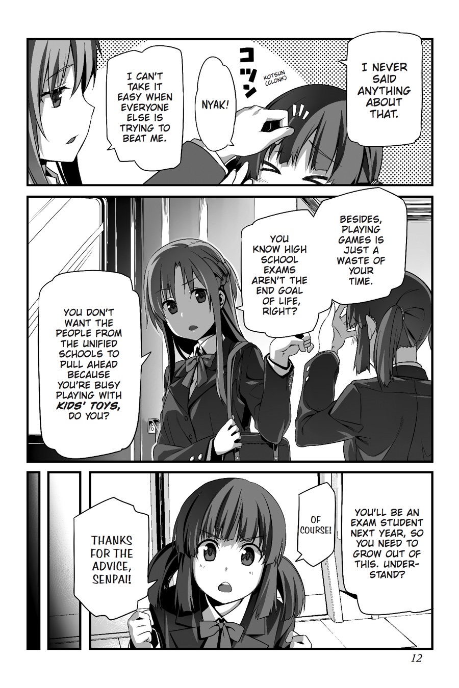 Yuuki Asuna was a top student who spent her days studying at cram school and preparing for her high school entrance exams--but that was before she borrowed her brother's virtual reality game system and wound up trapped in Sword Art Online with ten thousand other frightened players. As time passes, Asuna fears what will become of her life outside the fantasy realm--the failure she might be seen as in the eyes of her peers and parents. Unwilling to wait on the sidelines for more experienced gamers to beat the game, Asuna employs her study habits to learn the mechanics of the game--and swordplay. Her swiftness impresses Kirito, a professional gamer who invites Asuna to join the best players on the front line. Is Asuna ready to swap class rankings for player rankings and join Kirito?