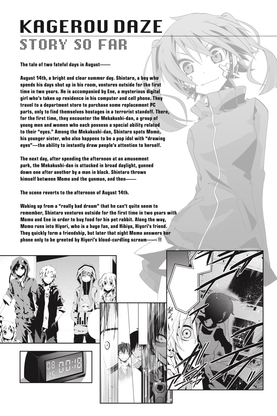 That fateful day: August 14. Both Shintaro and Momo have inexplicable encounters with people whose eyes give them mysterious powers--but something is different this time. Just what is the phenomenon known as the "kagerou daze," and what is its deep connection to all these incidents? Based on a scenario written by creator Jin, this latest volume in the Kagerou Daze series is exclusive to the manga adaptation!