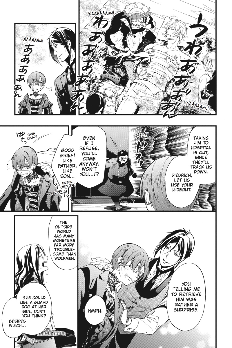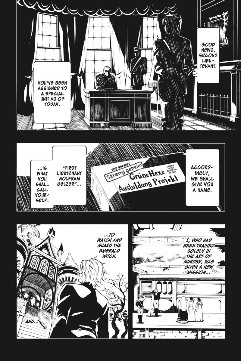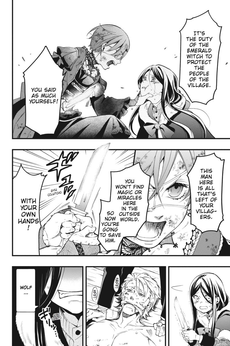 Having escaped the wolves in sheep's clothing of Wolfsschlucht, Earl Ciel Phantomhive, indomitable butler Sebastian, and the rest of the Phantomhive household abscond with the Emerald Witch. They take refuge in the hideaway of an old family friend-Diedrich, the late Vincent Phantomhive's schoolmate and confidant. But as preparations are made and wounds rested for the passage home to England, word of the Undertaker and his odd behavior hangs over the proceedings. What little memory could have tripped up the ever-jovial reaper, causing his chartreuse eyes to well with tears...?