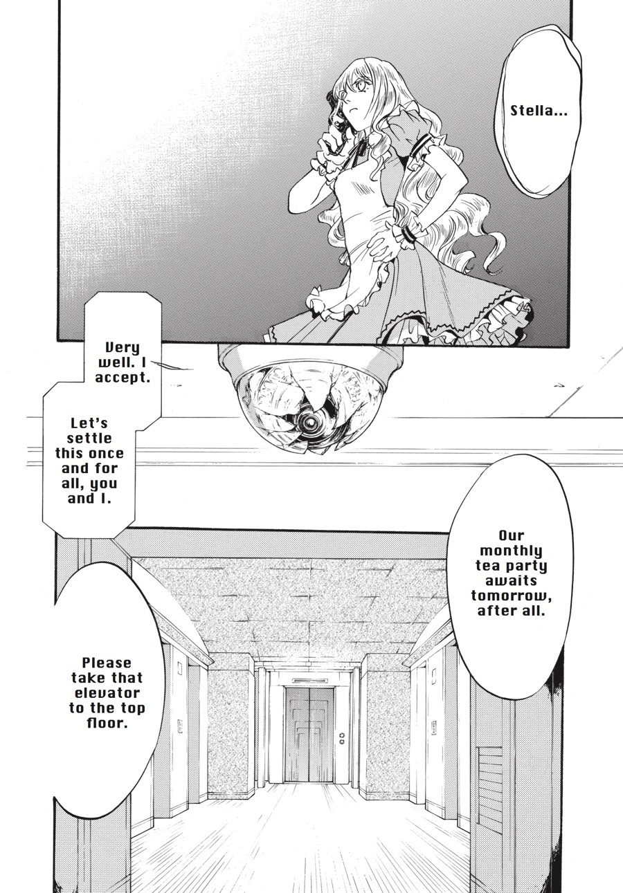 Our real parents, yours and mine... The death match with Maré leaves Stella drained. Slipping in and out of consciousness, she relives the traumatic events of the airline crash. Was Stella's white-haired bully really on the same plane? And what was in the strange box she saw with him? Did you and I meet a long time ago? Maybe on an airplane...? Stella's doubts about Tsukito, her white-haired bodyguard, resurface...Is her returning memory a Pandora's box? ...and perhaps a hundred others have died at his hand.
