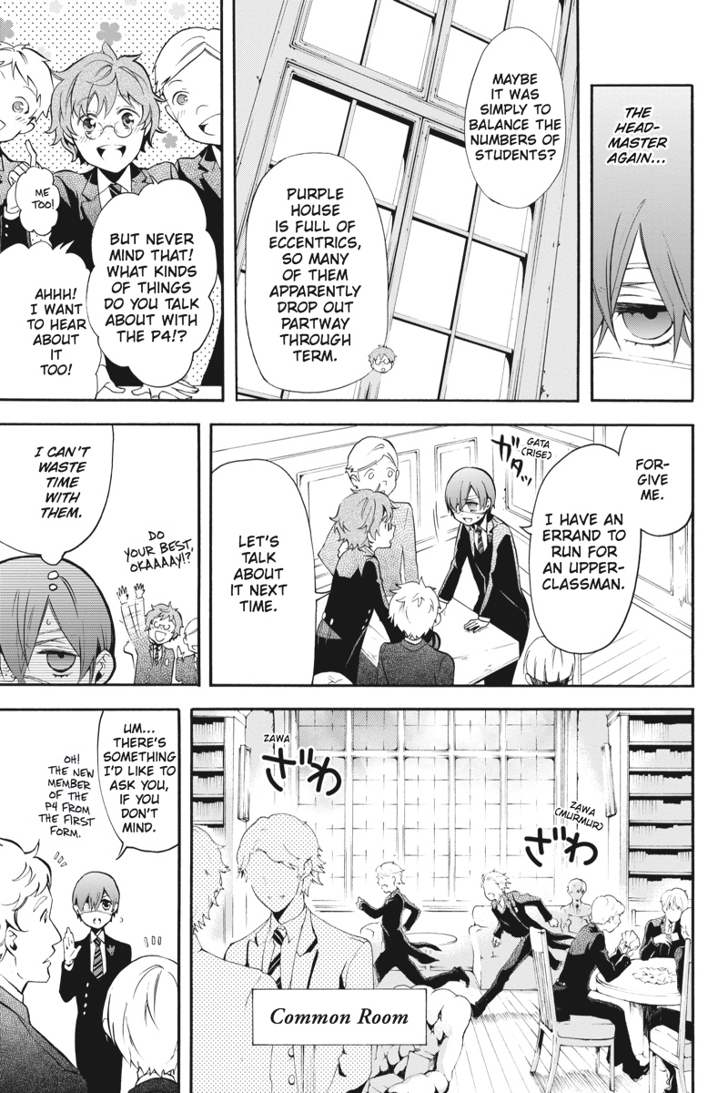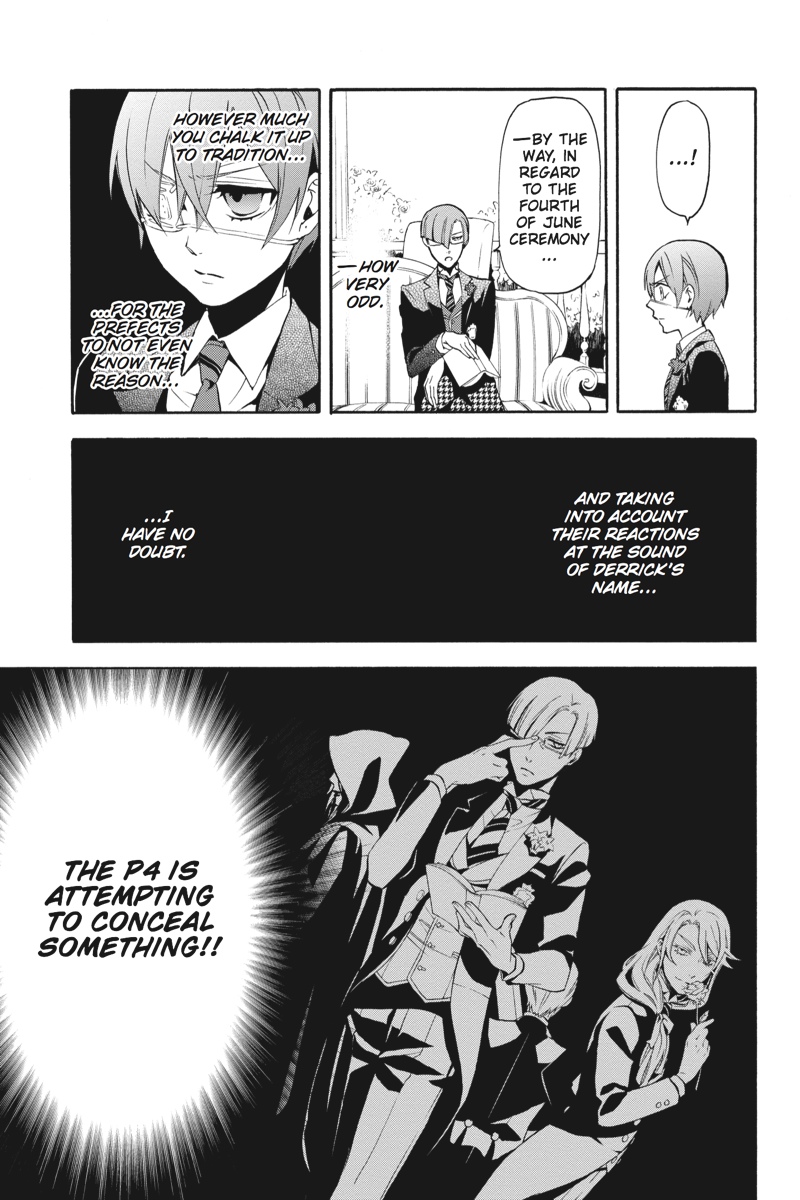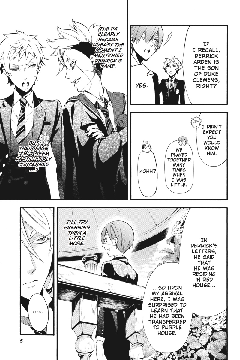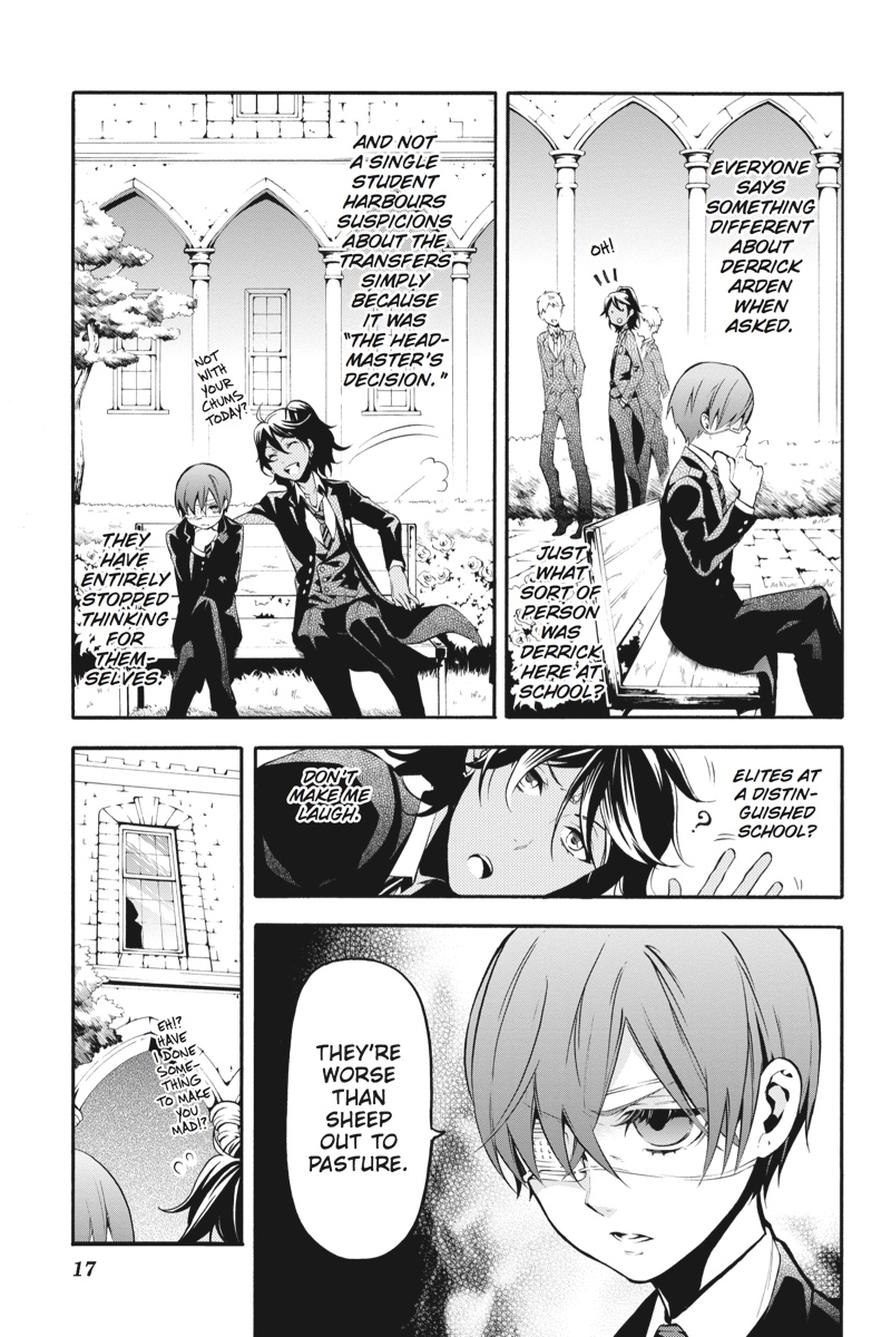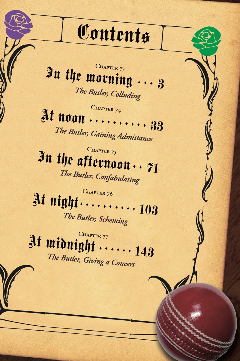 Earl Ciel Phantomhive and his invincible butler, Sebastian, have thusfar been foiled in their attempts to seek an audience with the headmaster of Weston College. To further their investigation, the sole option that remains is the exclusive "Midnight Tea Party" hosted by the elusive school head. And the only way Ciel, earl or no, can land a seat at that table is by earning the title of e Most Valuable Player in the College's annual cricket tournament. Selected from each house, students in the springtime of youth battle among the wickets on the spring-green lawn. Will the usually unperturbed young earl be bowled over by this unexpected turn of events?!