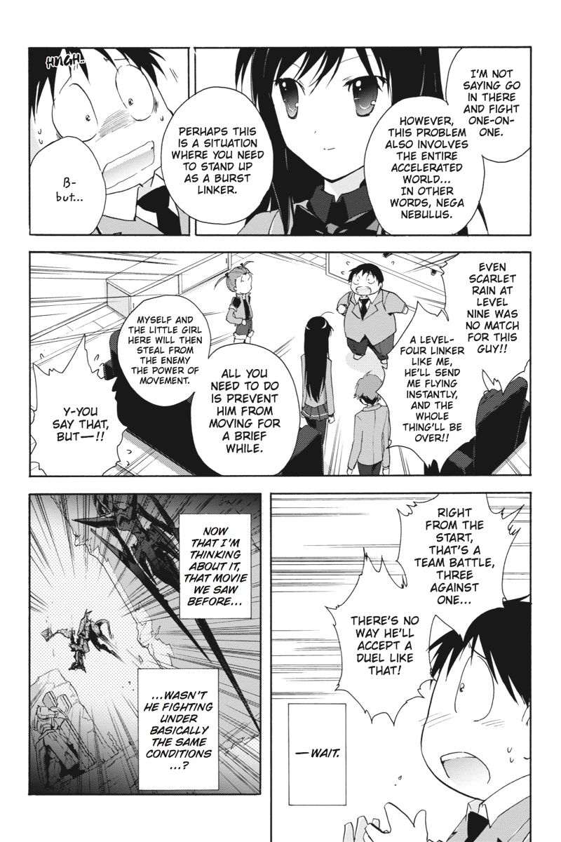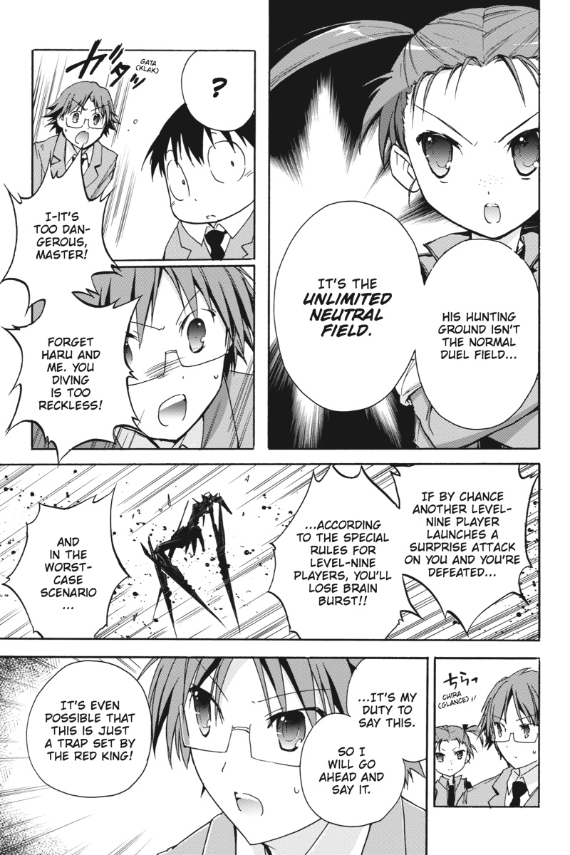 Finally, the Red Storm Princess arc reaches its dramatic climax as Haruyuki is faced with the treacherous illusions of Yellow Radio as well as the overwhelming power of the Chrome Disaster armor! Will Silver Crow, Scarlet Rain, and Cyan Pile be able to overcome this deadly onslaught of cunning and strength?