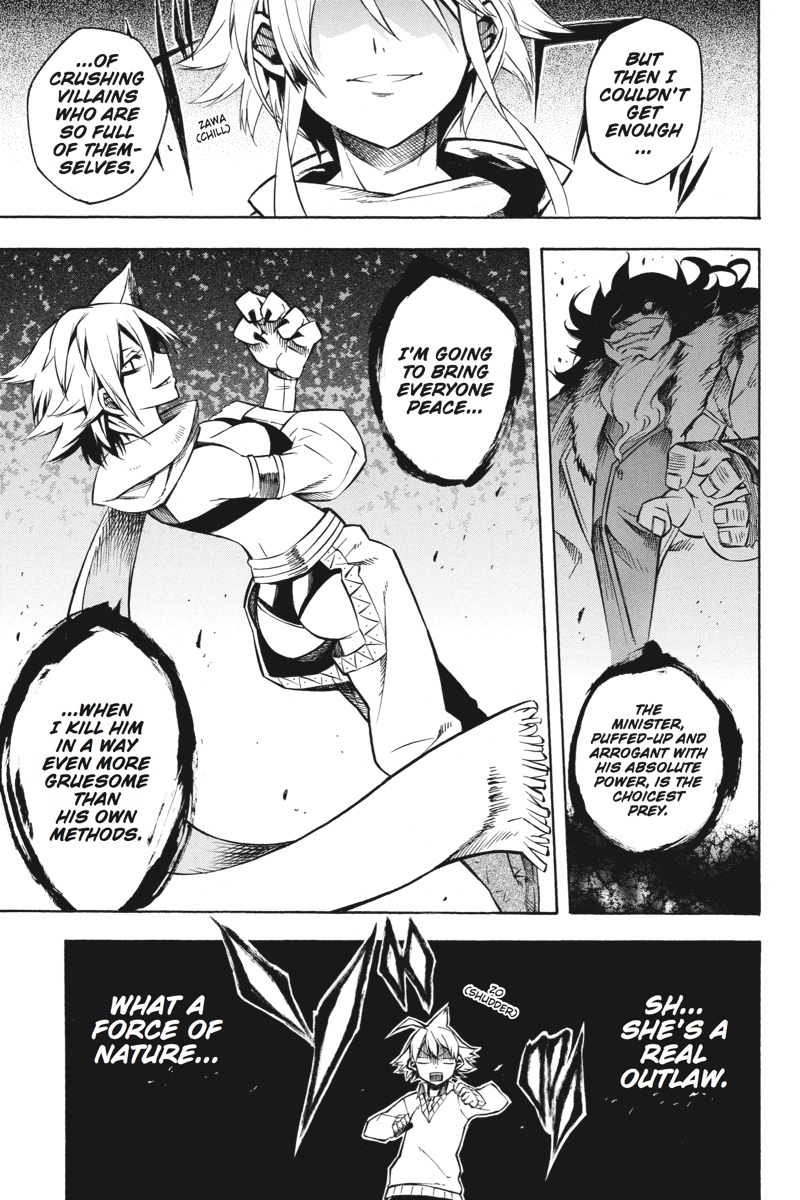 Tatsumi's fantasy of leading a righteous assassin's life is brutally shattered when Sheele is lost in battle. But though Tatsumi resolves to stand tall against his sorrows, a new group of teigu-wielders appears before him: the Three Beasts!! In the battle between teigus, where there can be only one victor, who will fall prey to death?!