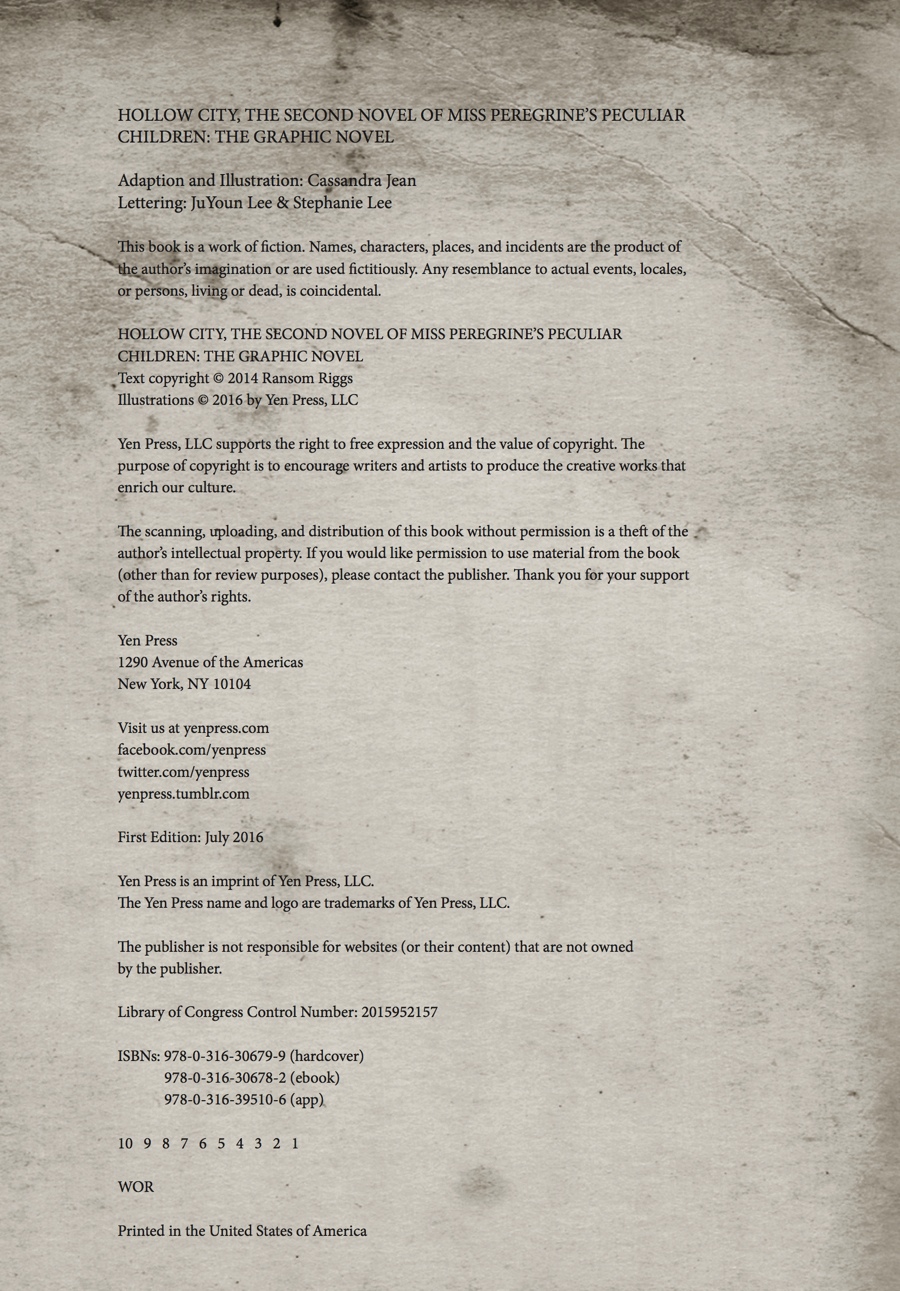 After fleeing an army of terrible monsters, Jacob Portman and his peculiar friends find themselves lost at sea, but the only person who might be able to get them ashore safely, their illustrious headmistress Miss Peregrine, is stuck in the form of a bird! Hoping to find a way to get Miss Peregrine back to normal--or as normal as a peculiar can get--the children journey to London. But no matter where they go, trouble lurks after them... Cassandra Jean's evocative visuals once again work seamlessly with Hollow City's vintage photographs and Ransom Rigg's twisting fantasy narrative to make for a wholly immersive reading experience for fans of the original novels, fans graphic novels, and fans of reading a great story alike!
