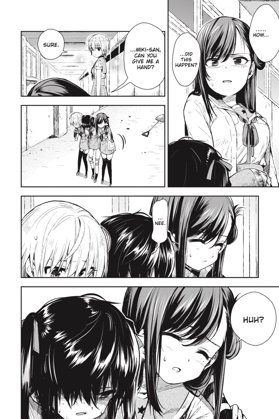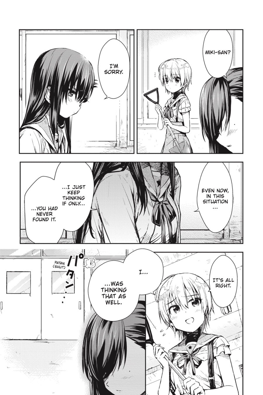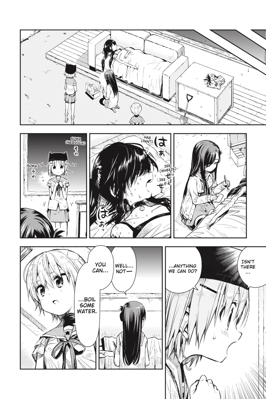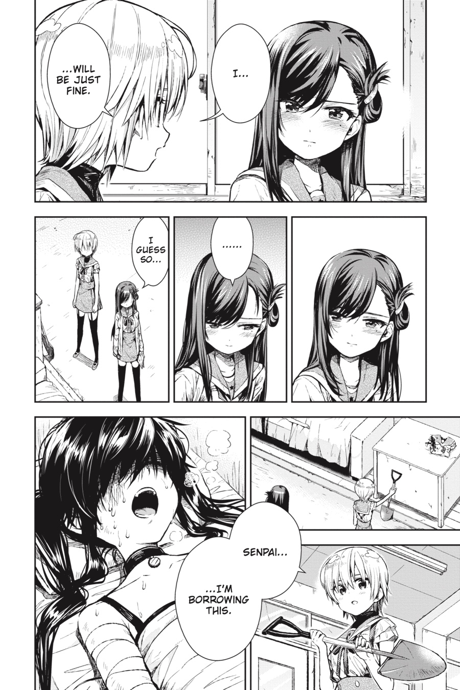 Down in the emergency shelter of the school, what could have been a dream reunion becomes a gruesome nightmare...With Kurumi injured and her condition worsening, the newest member of the School Living Club makes a choice...?!