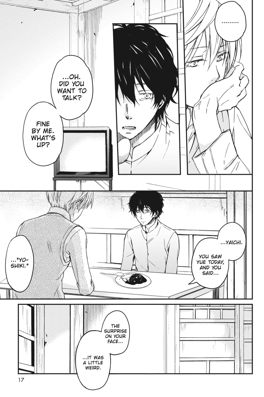 When Tougo invites Akiyoshi and Yue over for dinner as a thank-you, all that's on the menu is food and fun. But when Tougo's father catches sight of Yue, he is startled and blurts out the name "Yoshiki." What exactly is the connection between this Yoshiki--to whom it seems Tougo owes his life--and Yue? And what kind of relationship existed between Yoshiki and Tougo's mother?! The secret behind the Meal is at long last revealed...
