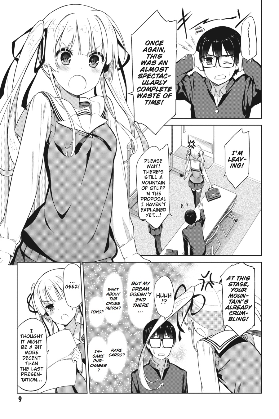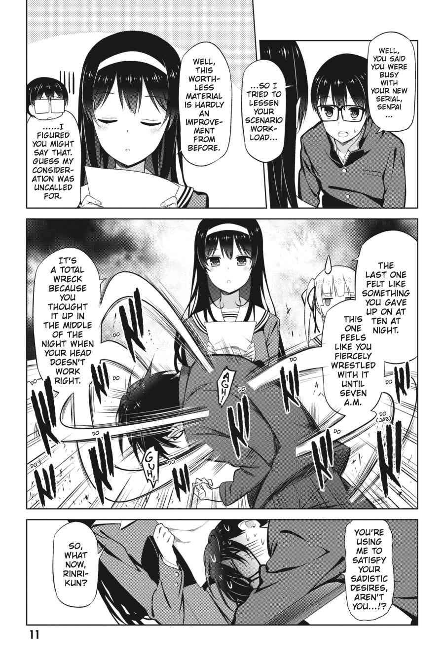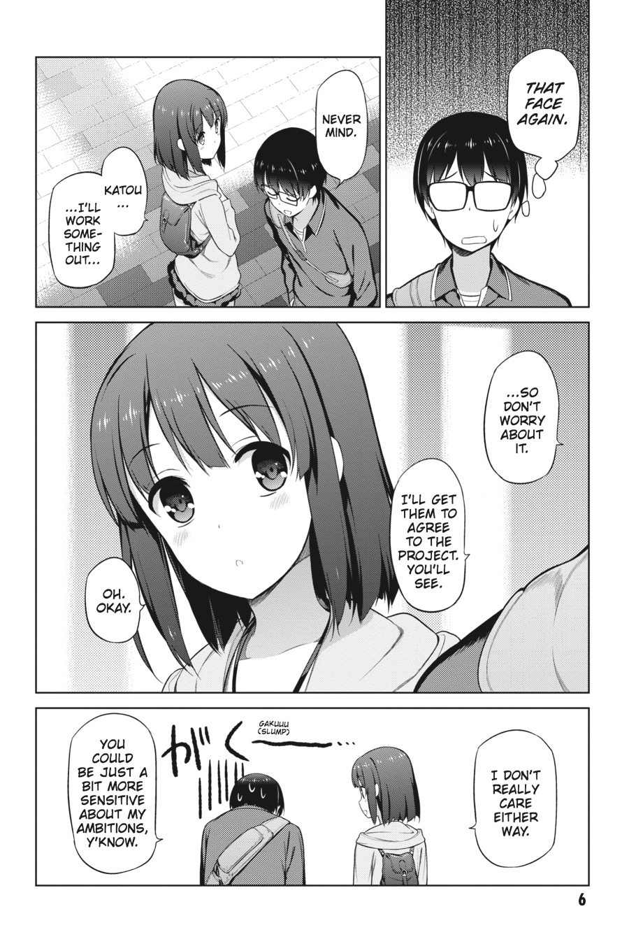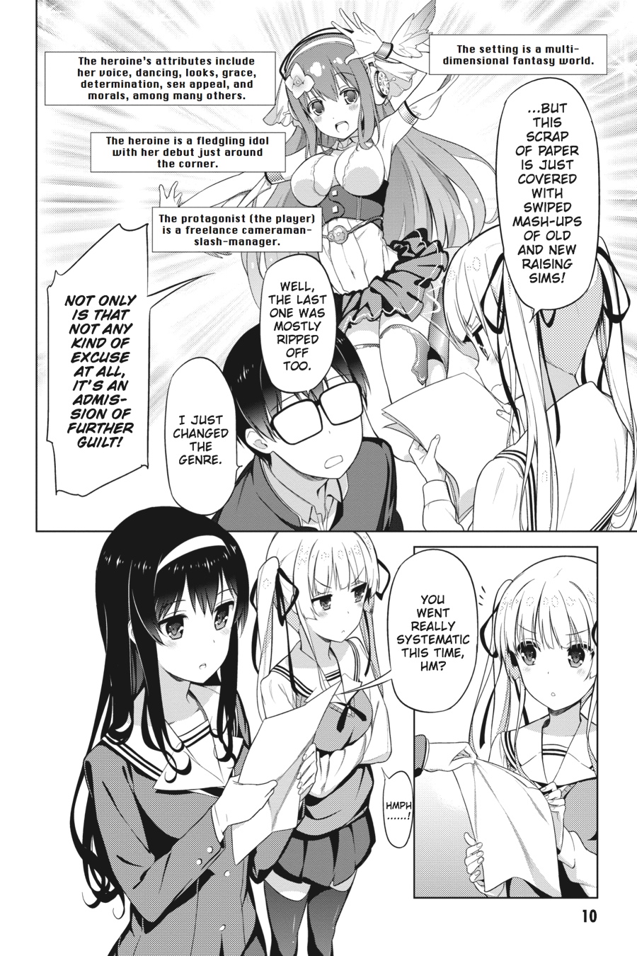 It hasn't been easy for Tomoya to get his game off the ground. It's tough enough that his heroine hopeful, Megumi, has a long way to go to become main love interest material. But just as he manages to get his production team together and things finally appear to be moving, progress comes to a crashing halt! With Tomoya and his lead writer, Utaha, butting heads over the plot, will creative differences spell a bad end for his dating sim dreams?!
