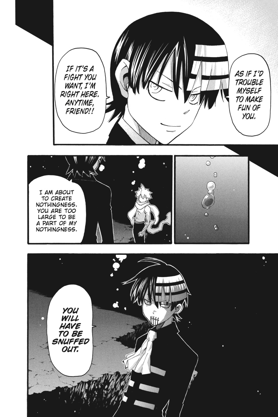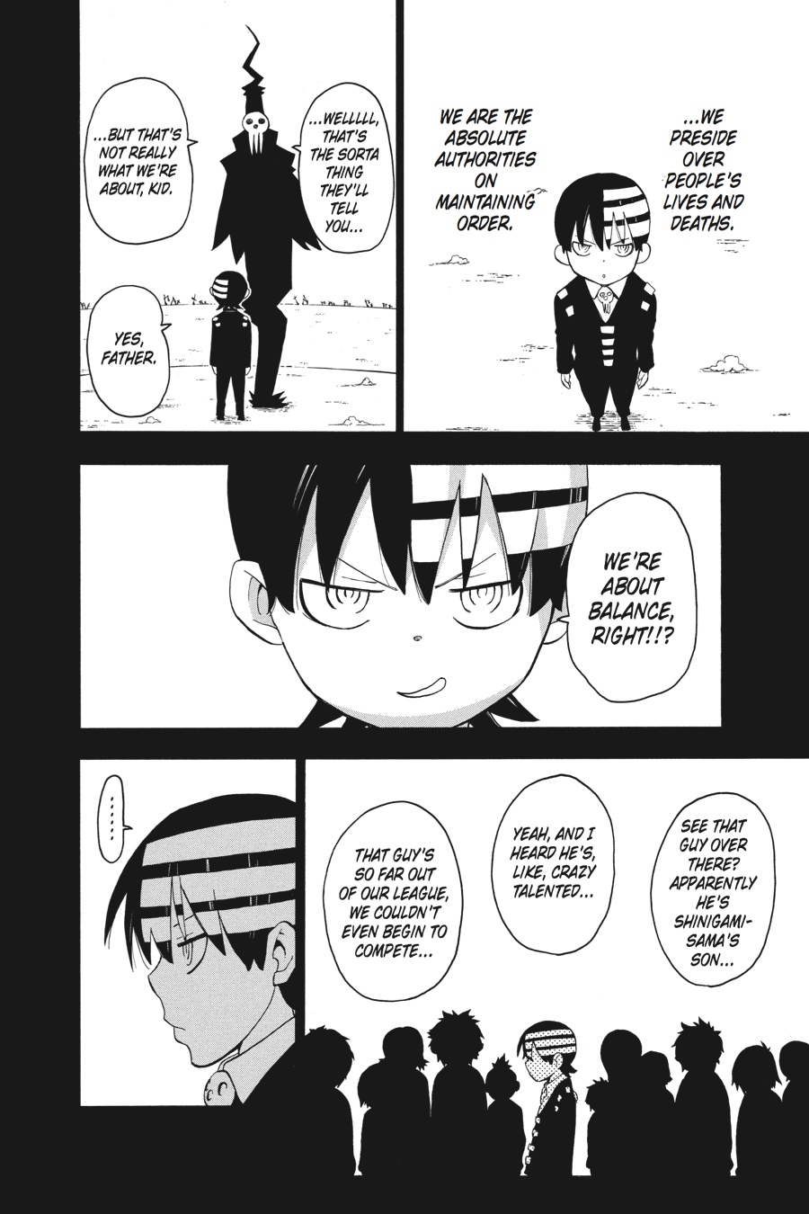 In his madness, Death the Kid has embraced a new notion of "order": Only in nothingness can there be true balance and equilibrium. But for Black*Star, being on equal footing with anyone is not his style. Black*Star has always wanted to "transcend the gods"-now his only chance may be to overpower his shinigami friend and take Death down if he wants to save him...!